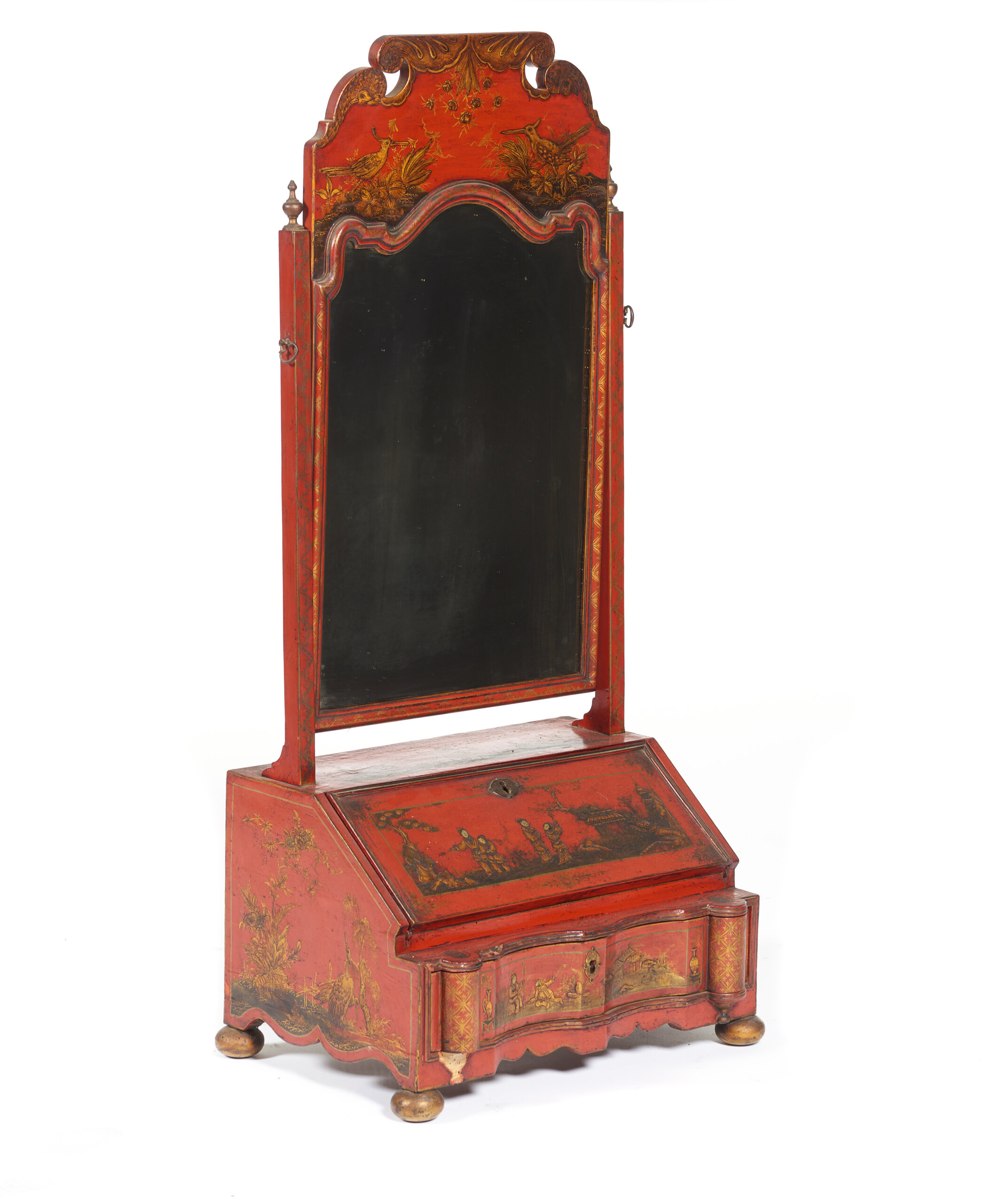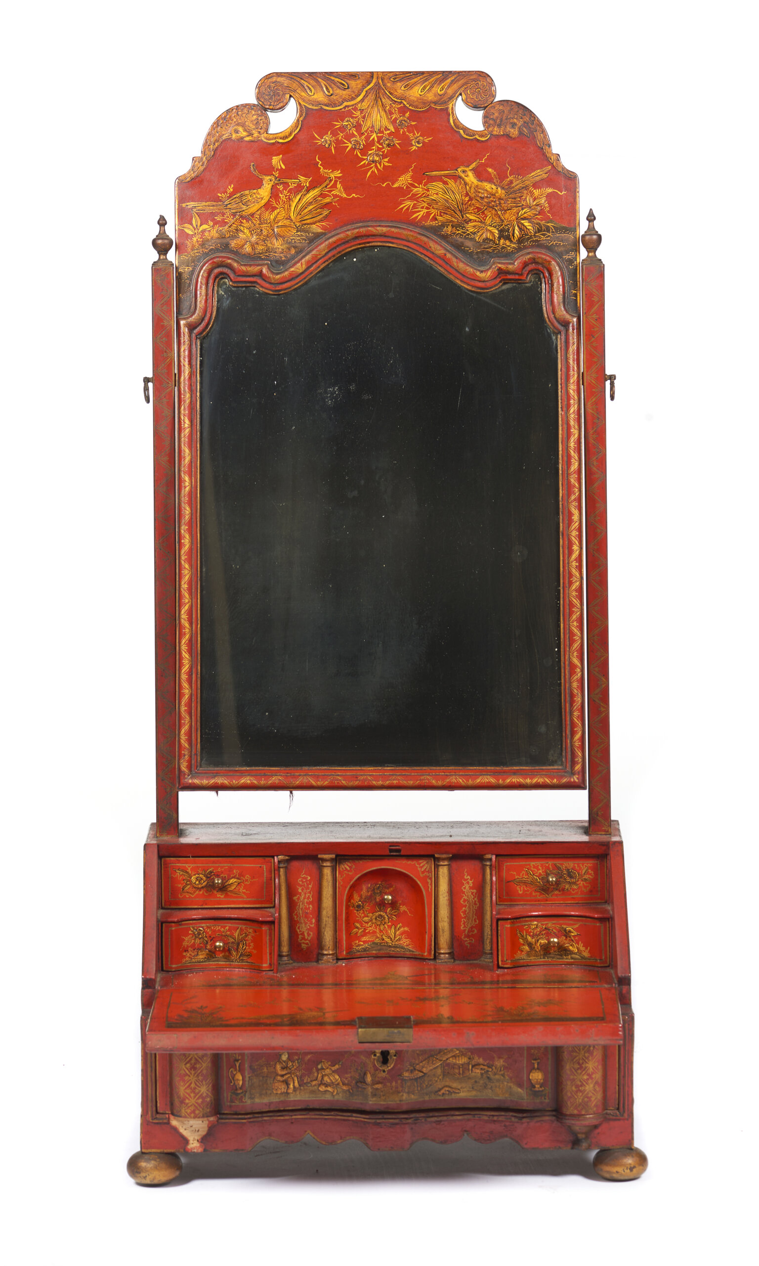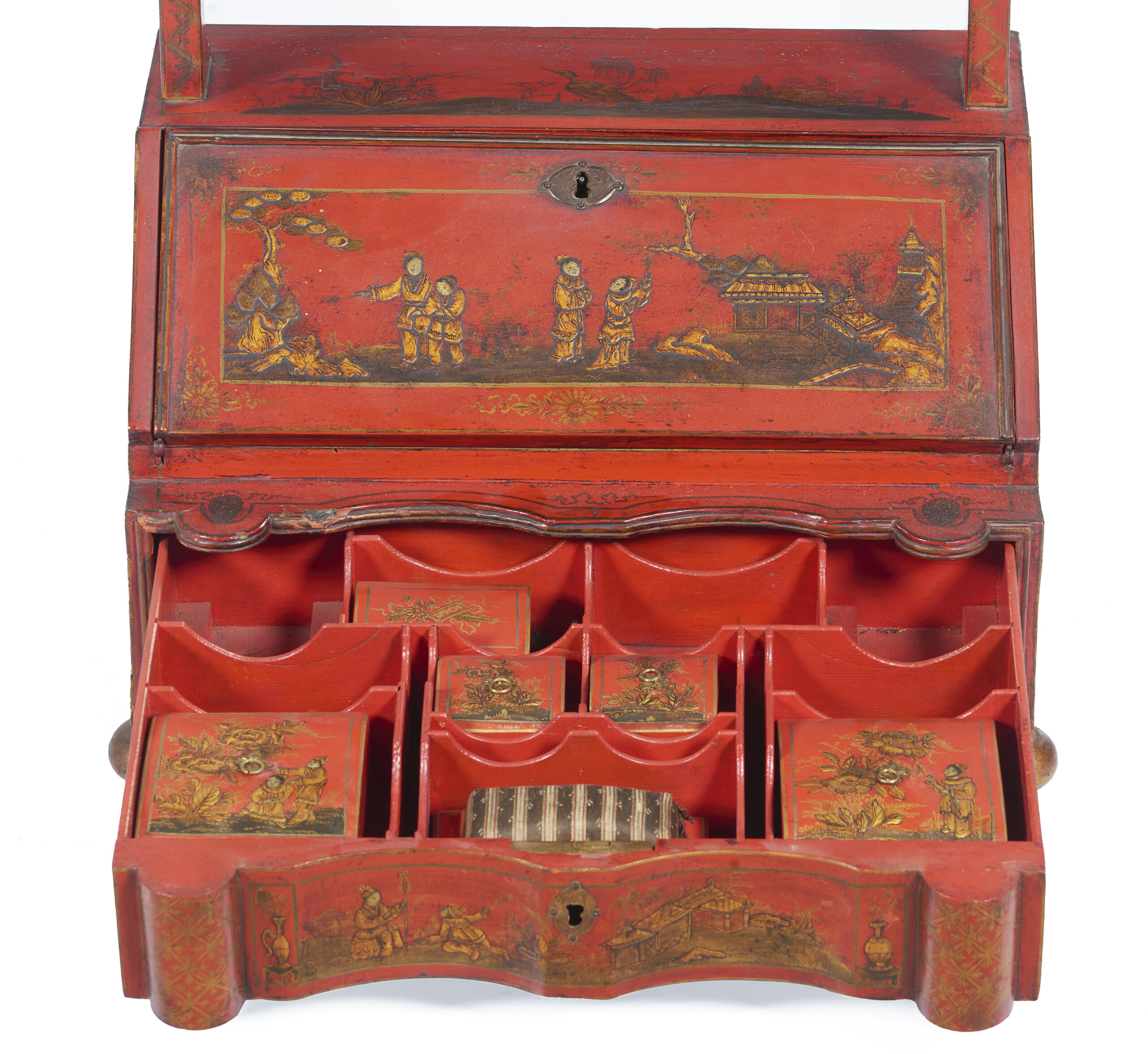 Decoração com chinoiseries a dourado representando paisagens com figuras