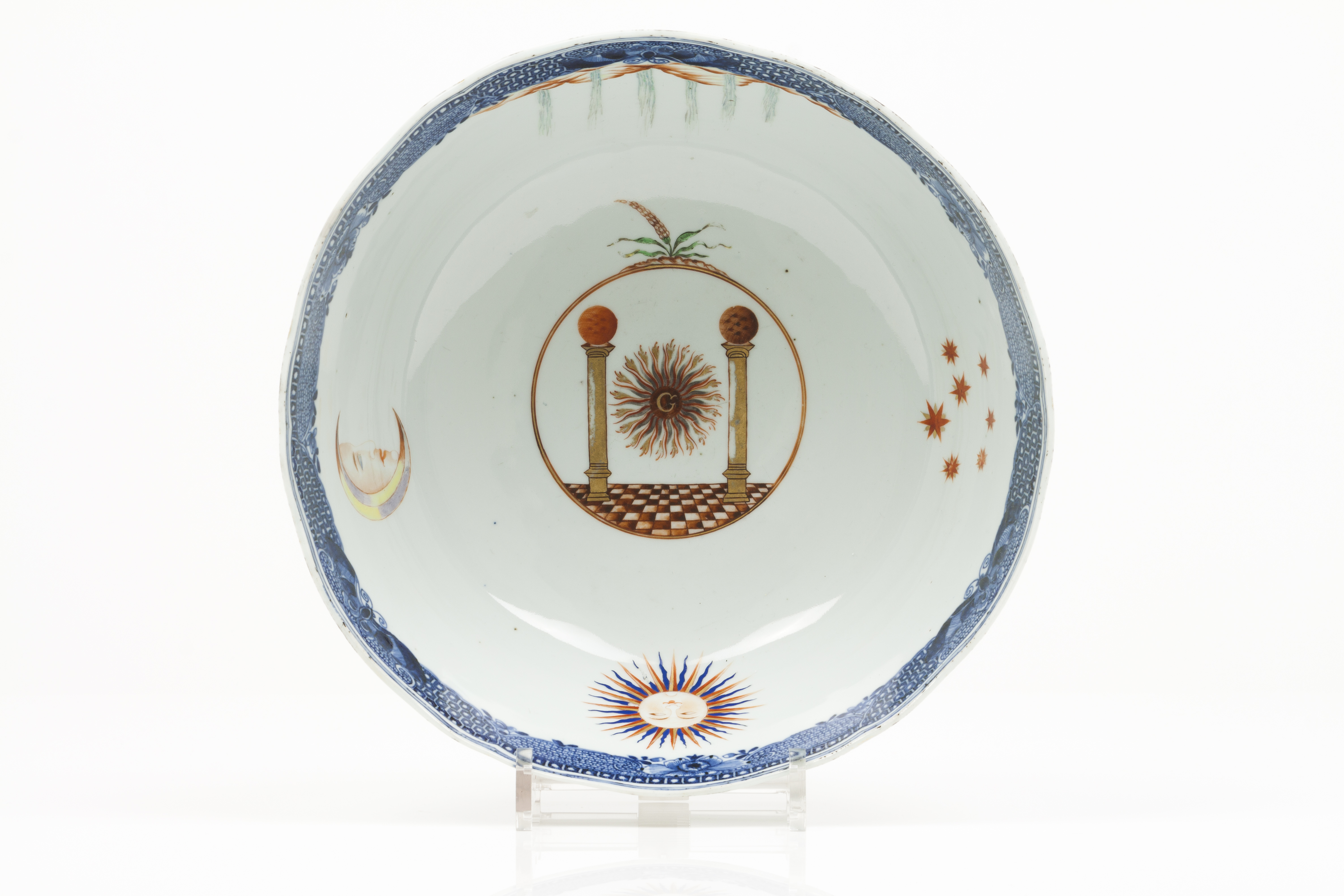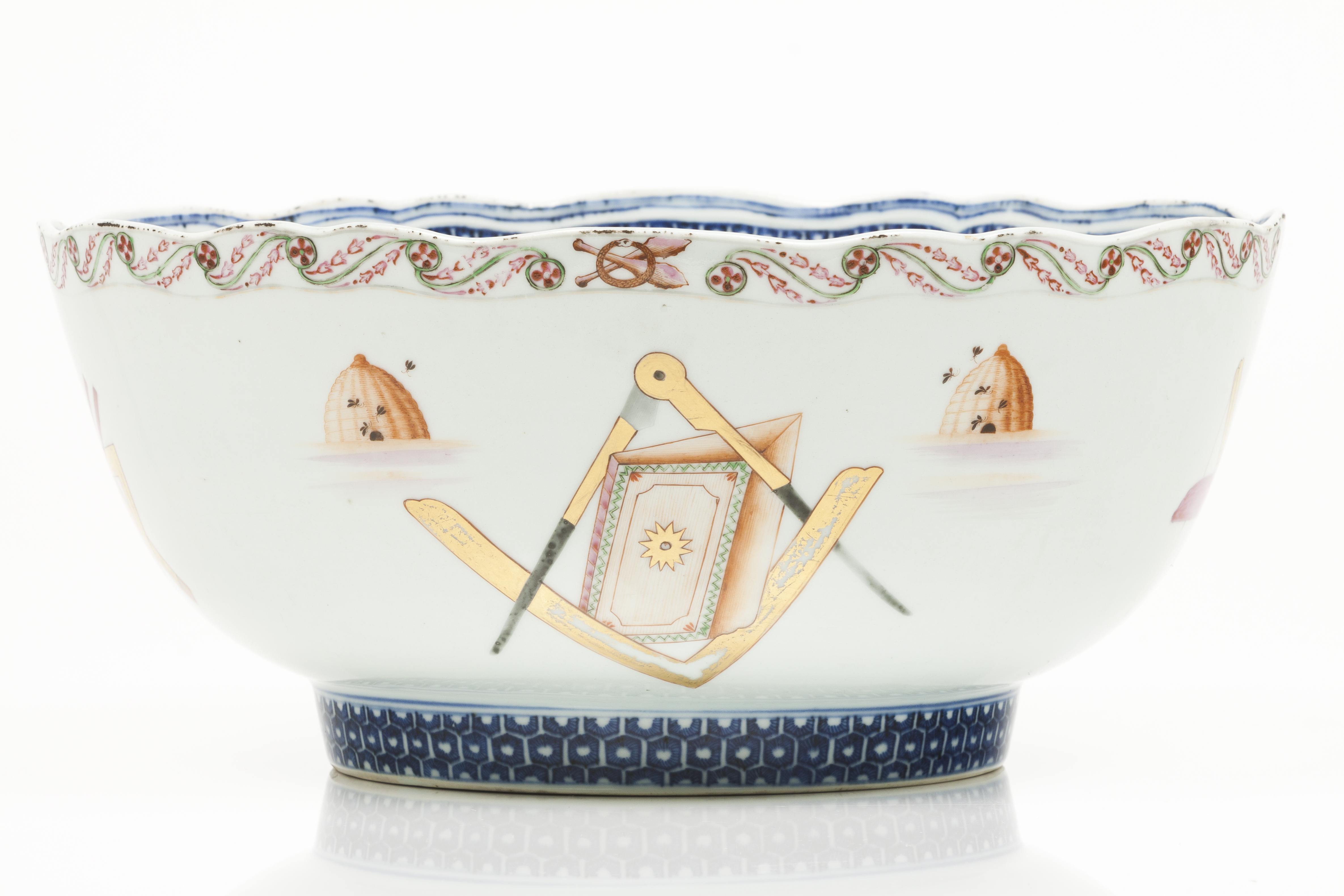Decoração policromada com esmaltes da Família Rosa representando símbolos maçónicos