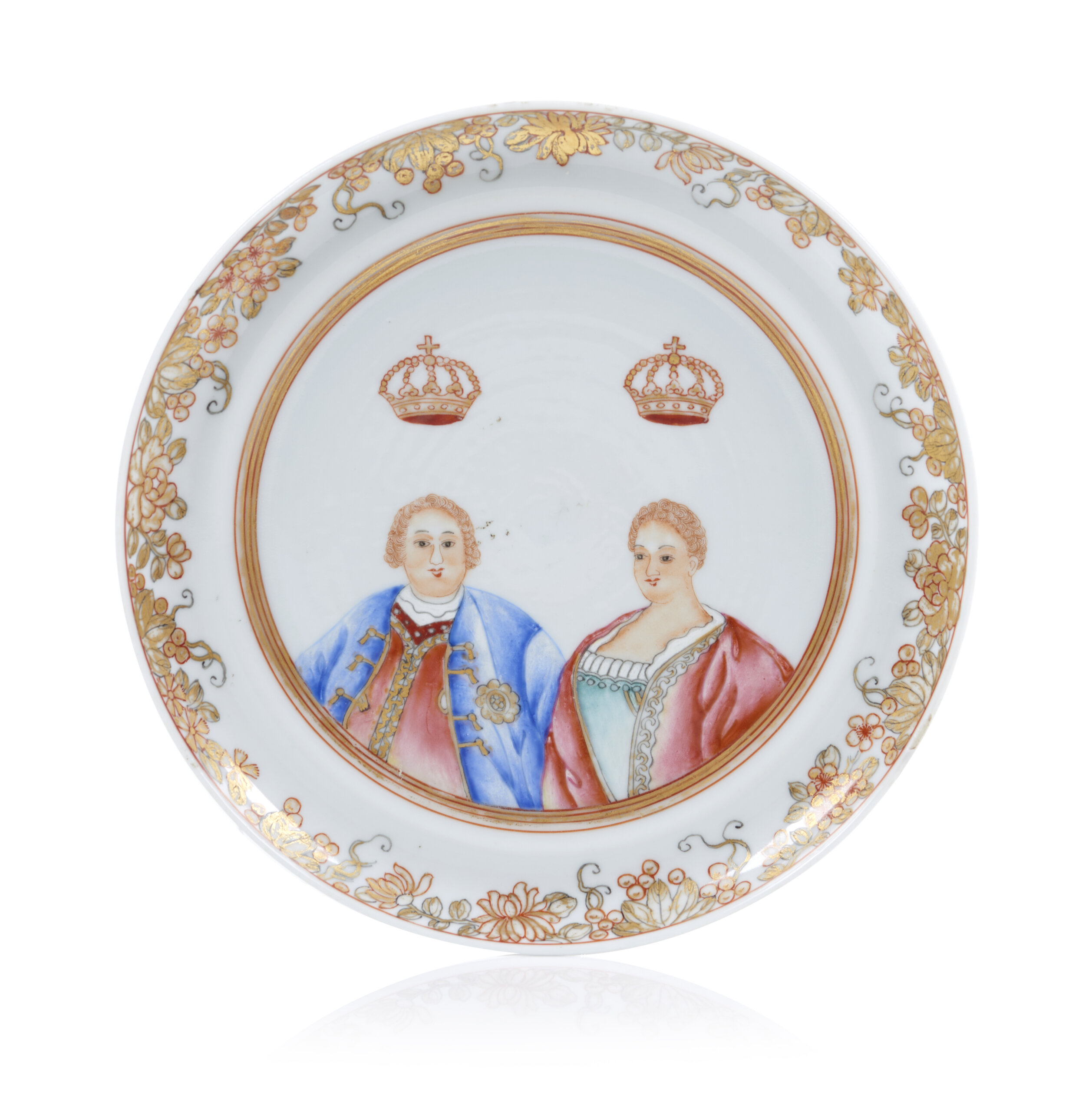 Decoração policromada e dourada representando Busto de Marie-Thérèse, Imperatriz da Áustria com seu marido príncipe consorte Françóis de Loraine com quem casa em 1736