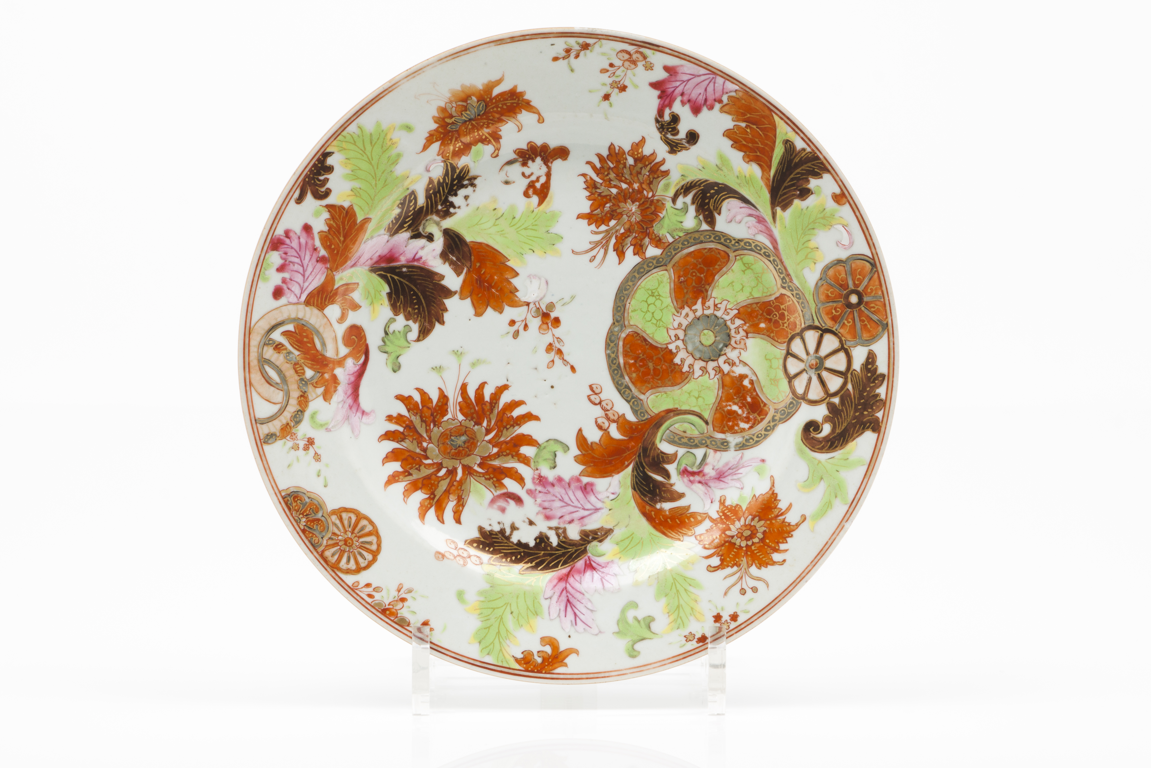Decoração policromada com esmaltes da Família Rosa "pseudo-folha-de-tabáco"