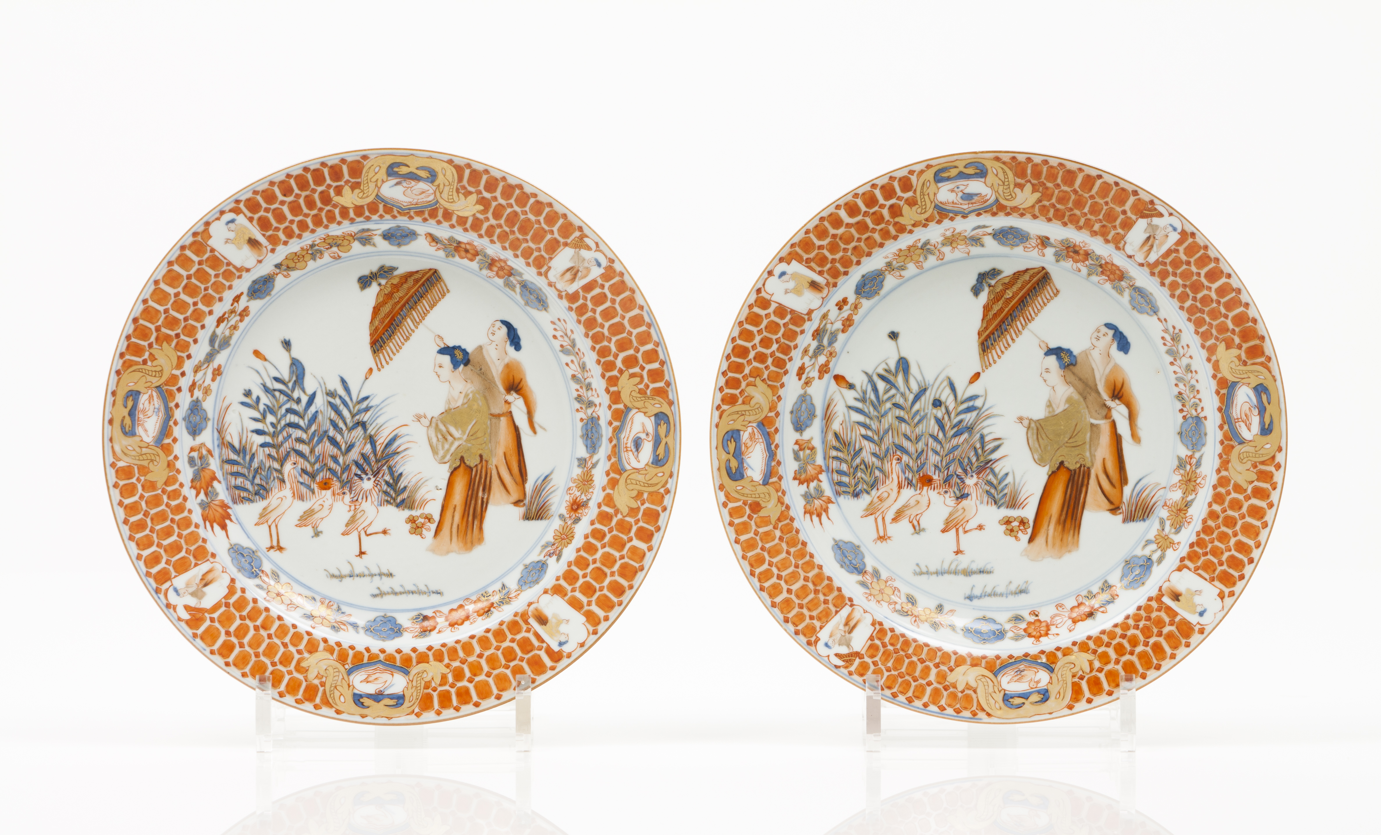 Decoração Imari "Dame au parasol" segundo desenho de Cornelis Pronk