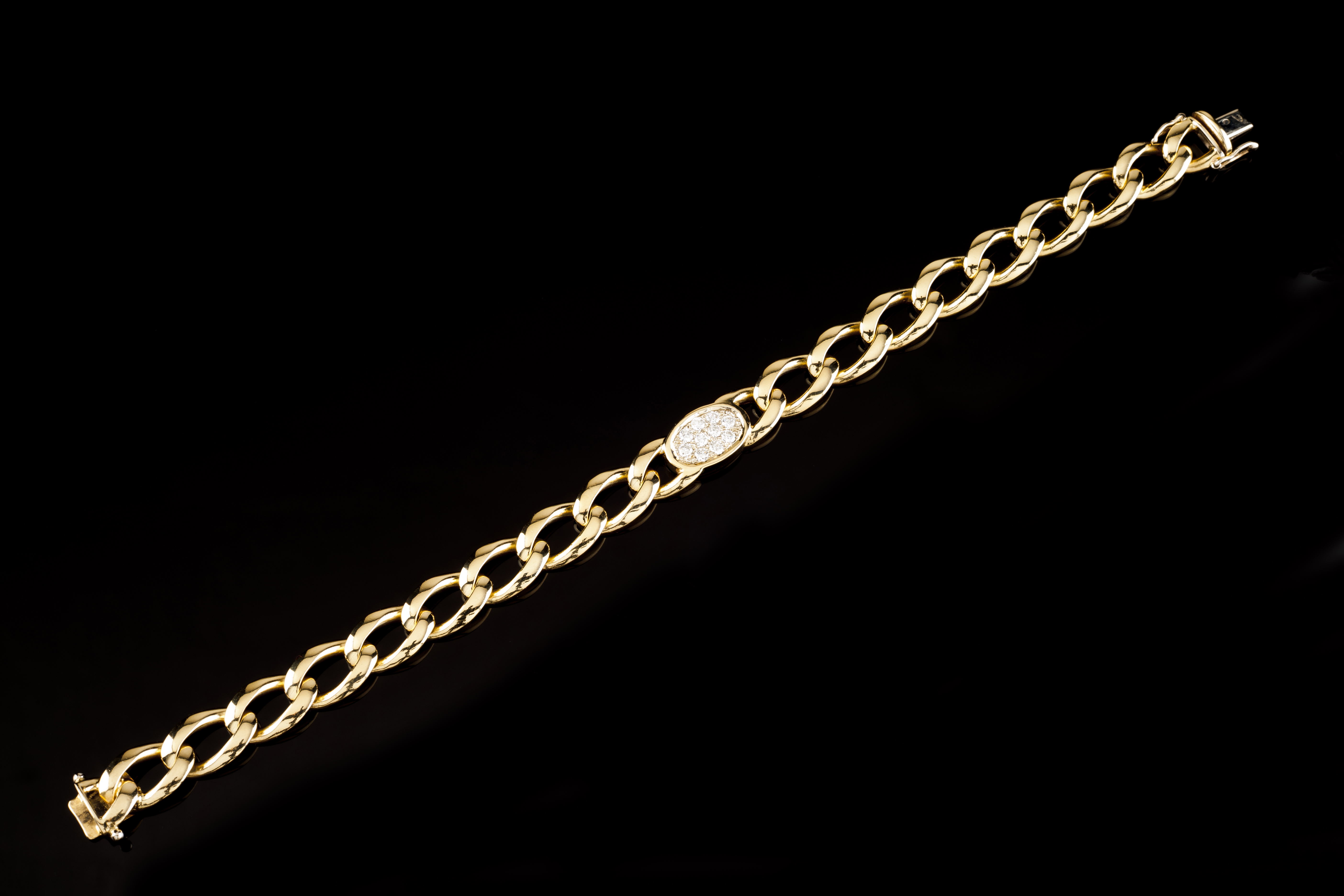 Malha de barbela, centro cravejado com 10 diamantes talhe brilhante (ca. 0,50ct)
