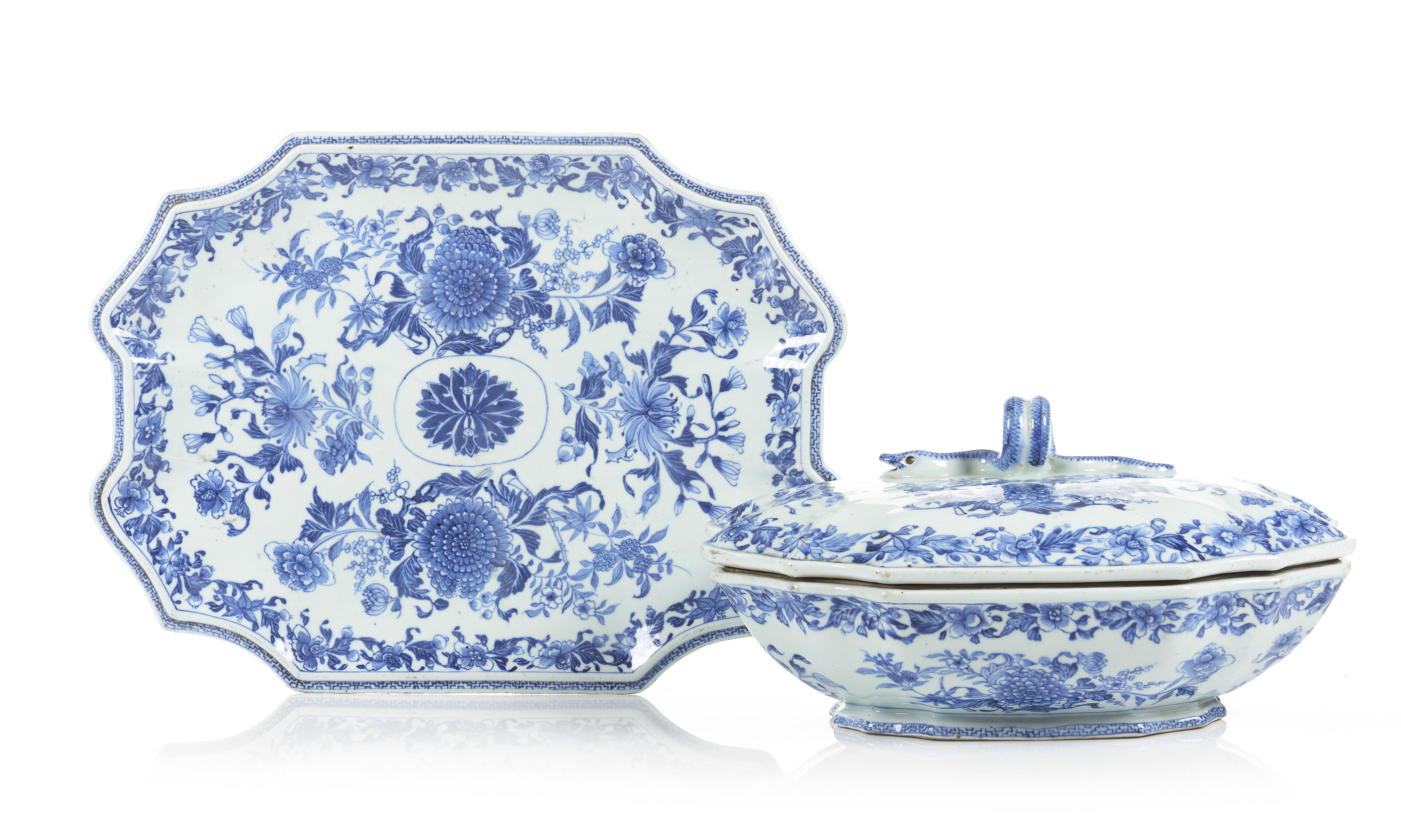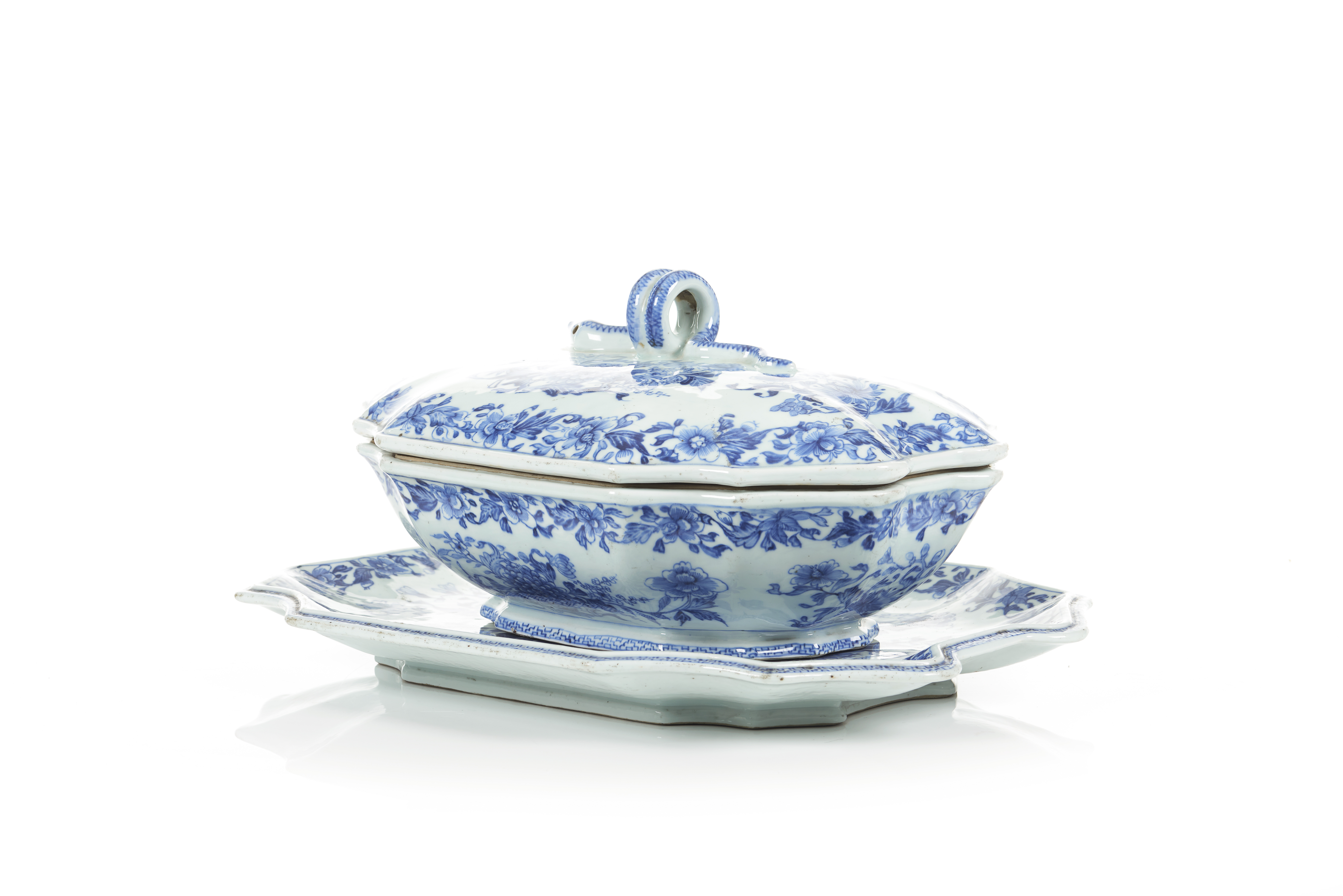 Estas terrinas refletem não só a mestria técnica dos artesãos chineses em replicar estilos europeus, mas também o vigoroso comércio e intercâmbio cultural entre a China e o Ocidente, especialmente durante o século XVIII.