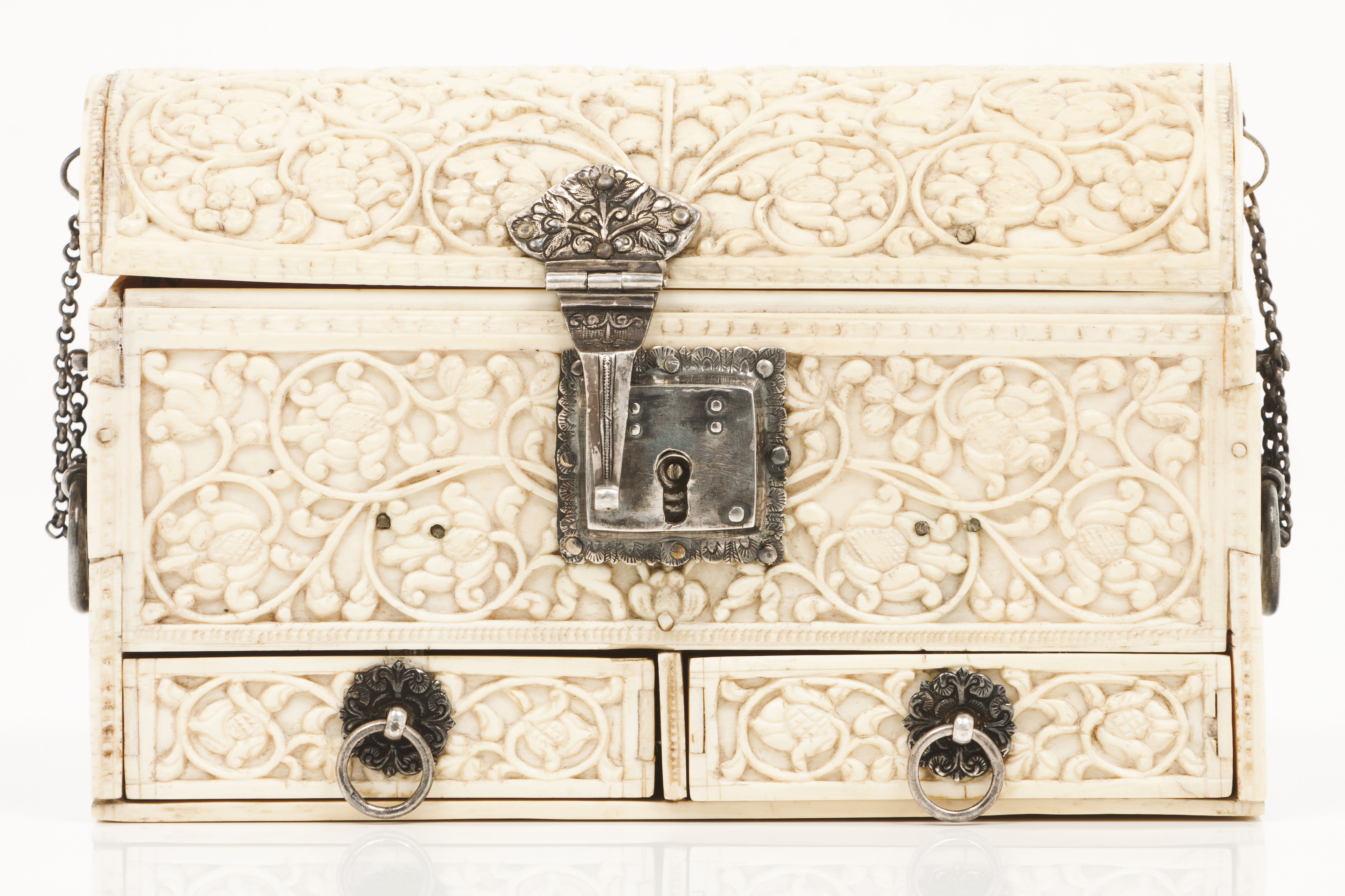 Ferragens em prata com decoração relevada