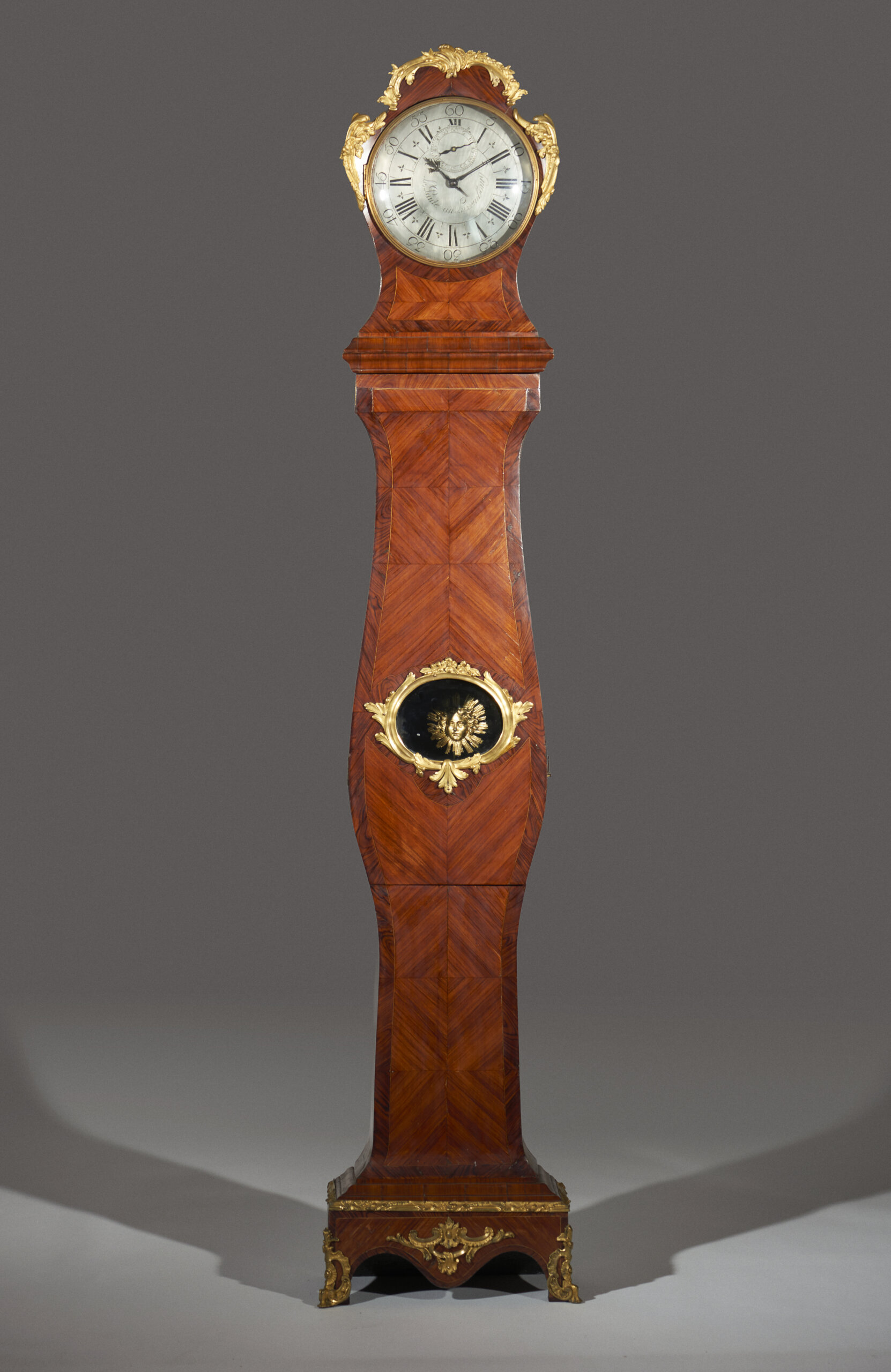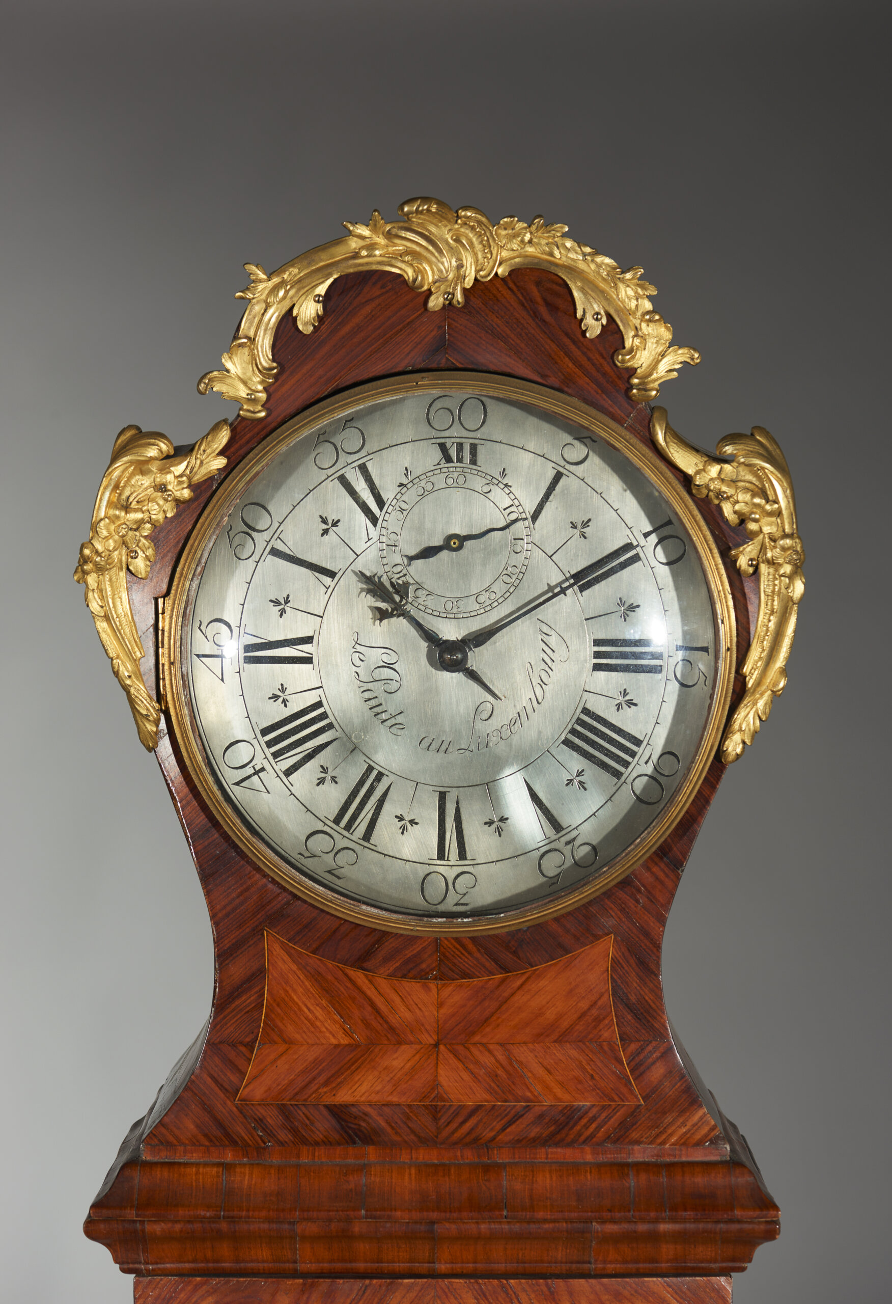 Esta formulação encontra paralelo em exemplares de mercado, incluindo um relógio de caixa alta Luís XV descrito pela Christie’s (lote 232, 13 June 2002), com mostrador assinado “LEPAUTE AU LUXEMBOURGH 1756”, atribuído a JeanAndré Lepaute.