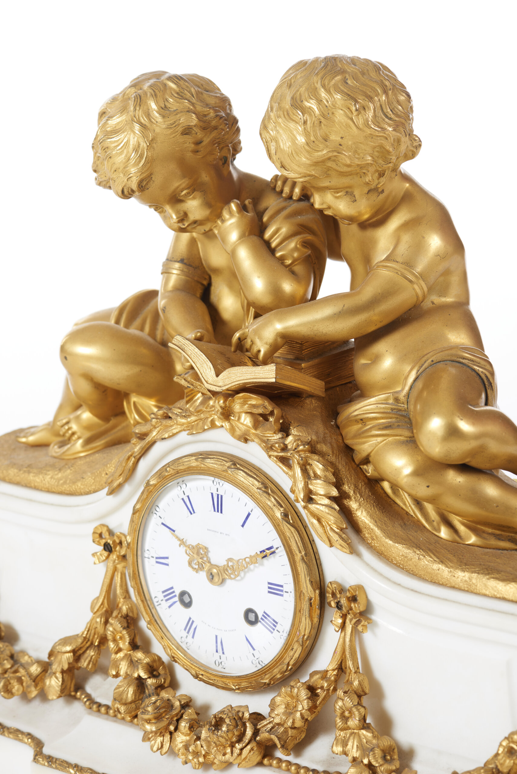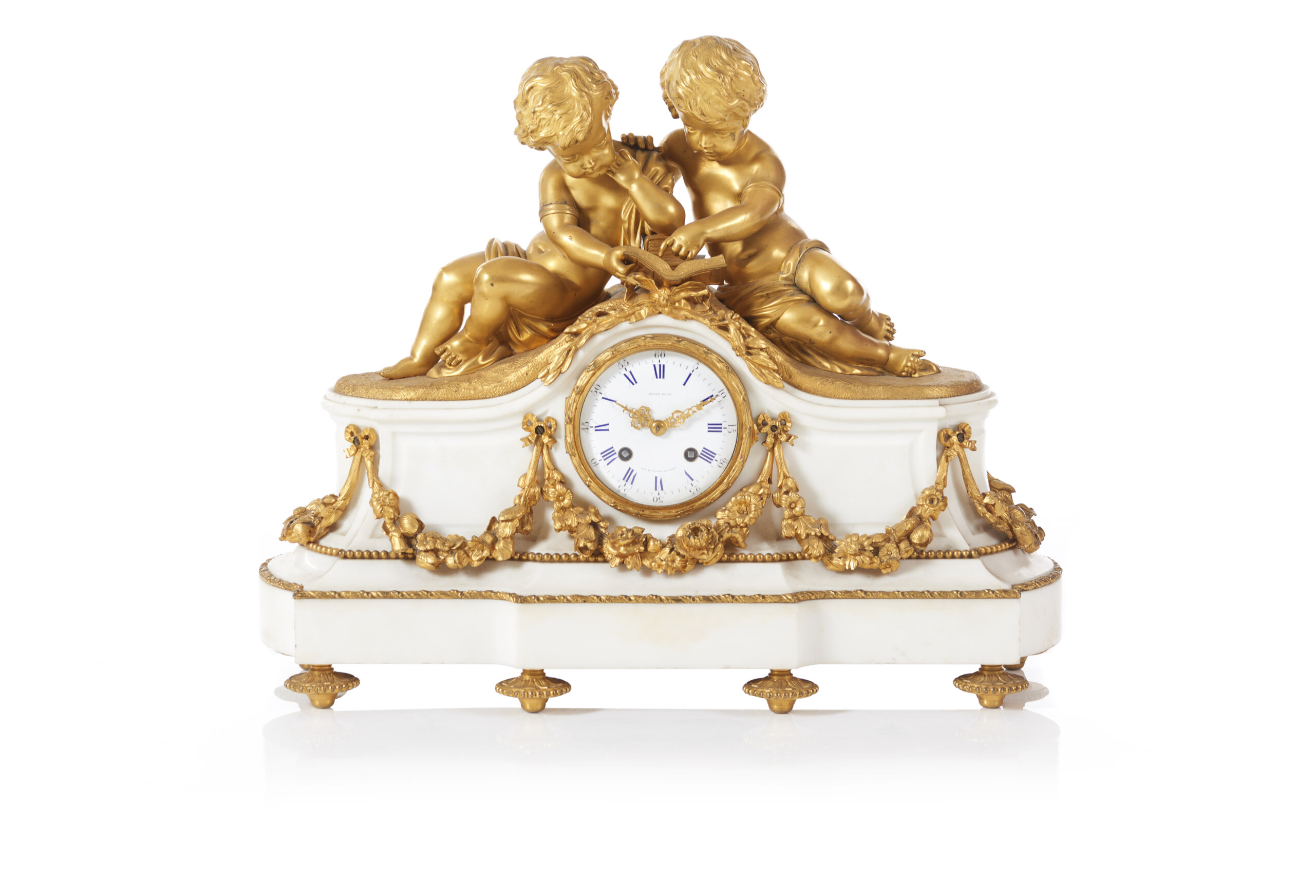 Em bronze dourado e mármore branco