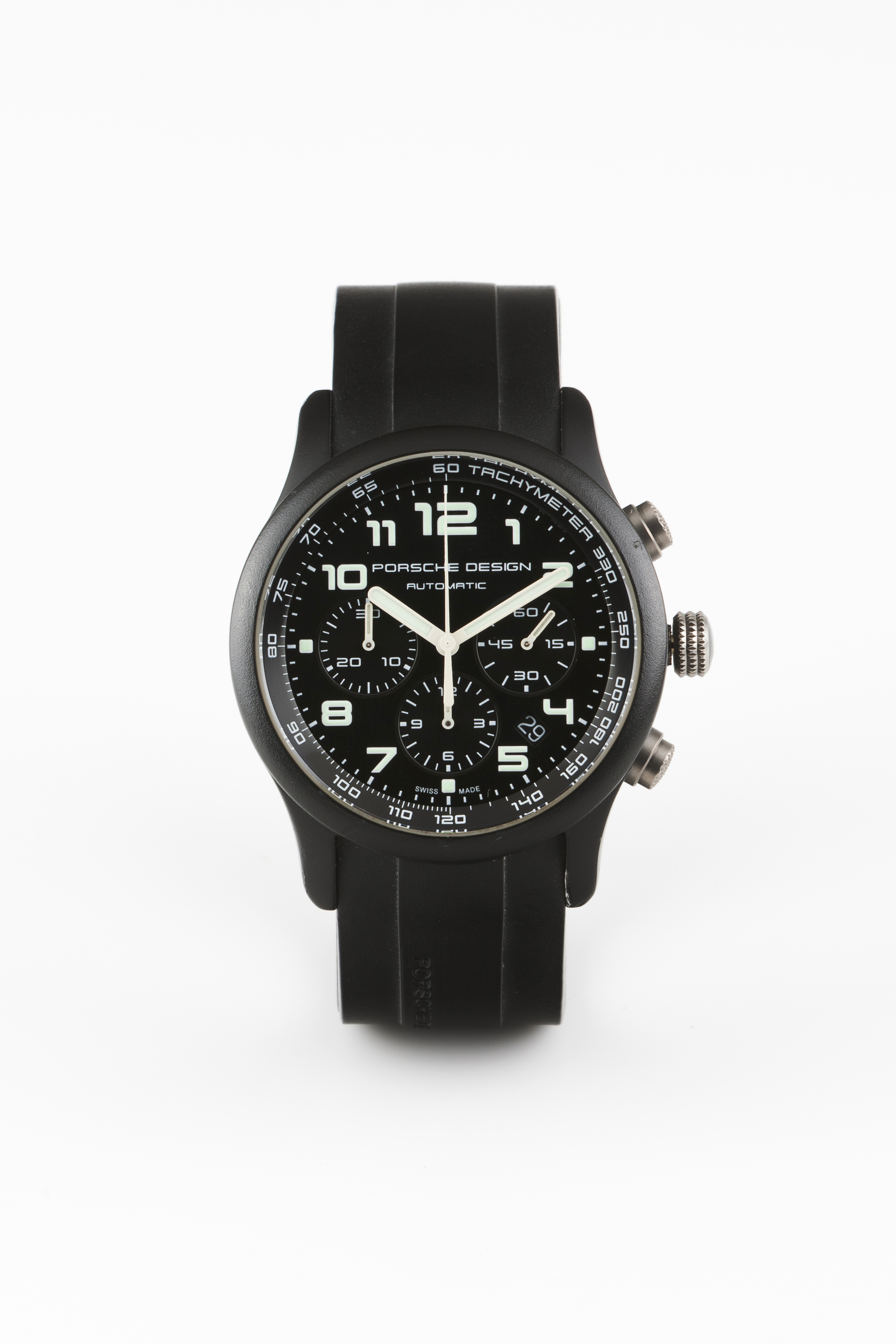Relógio marca Porshe Design. Movimento mecânico automático com função cronógrafo e data às 4/5h. Caixa em titânio. Com marcas de uso.