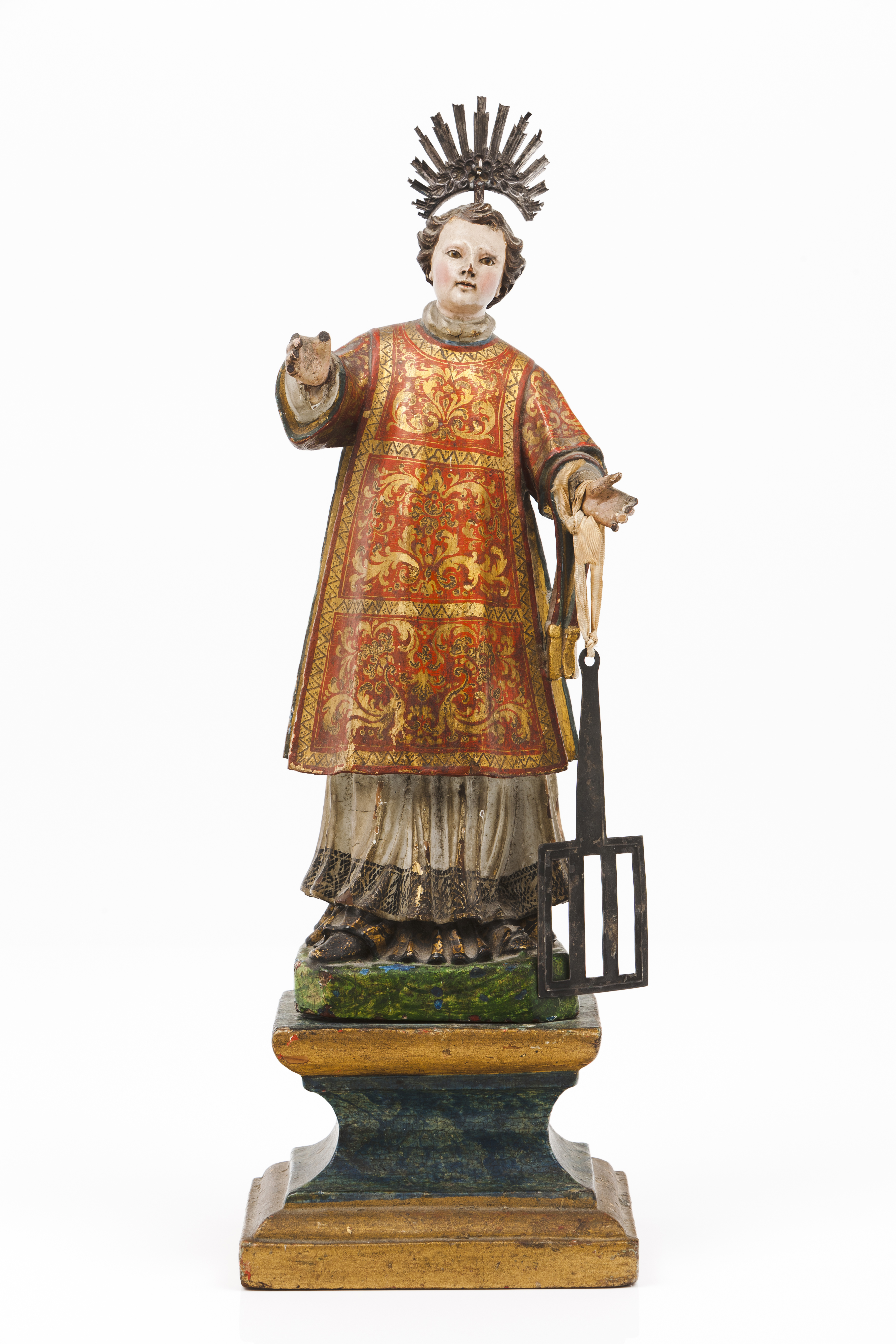 Em madeira entalhada e policromada