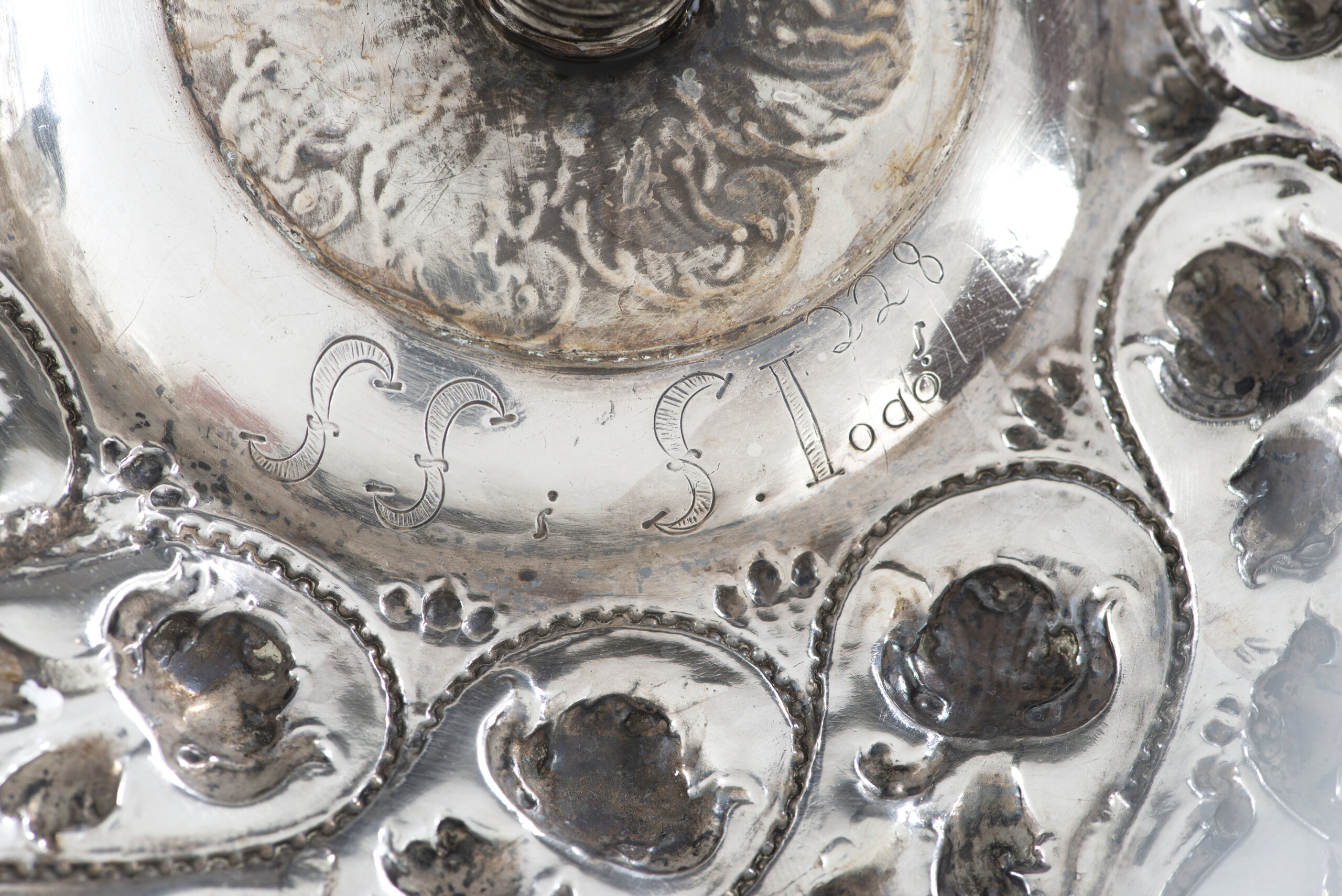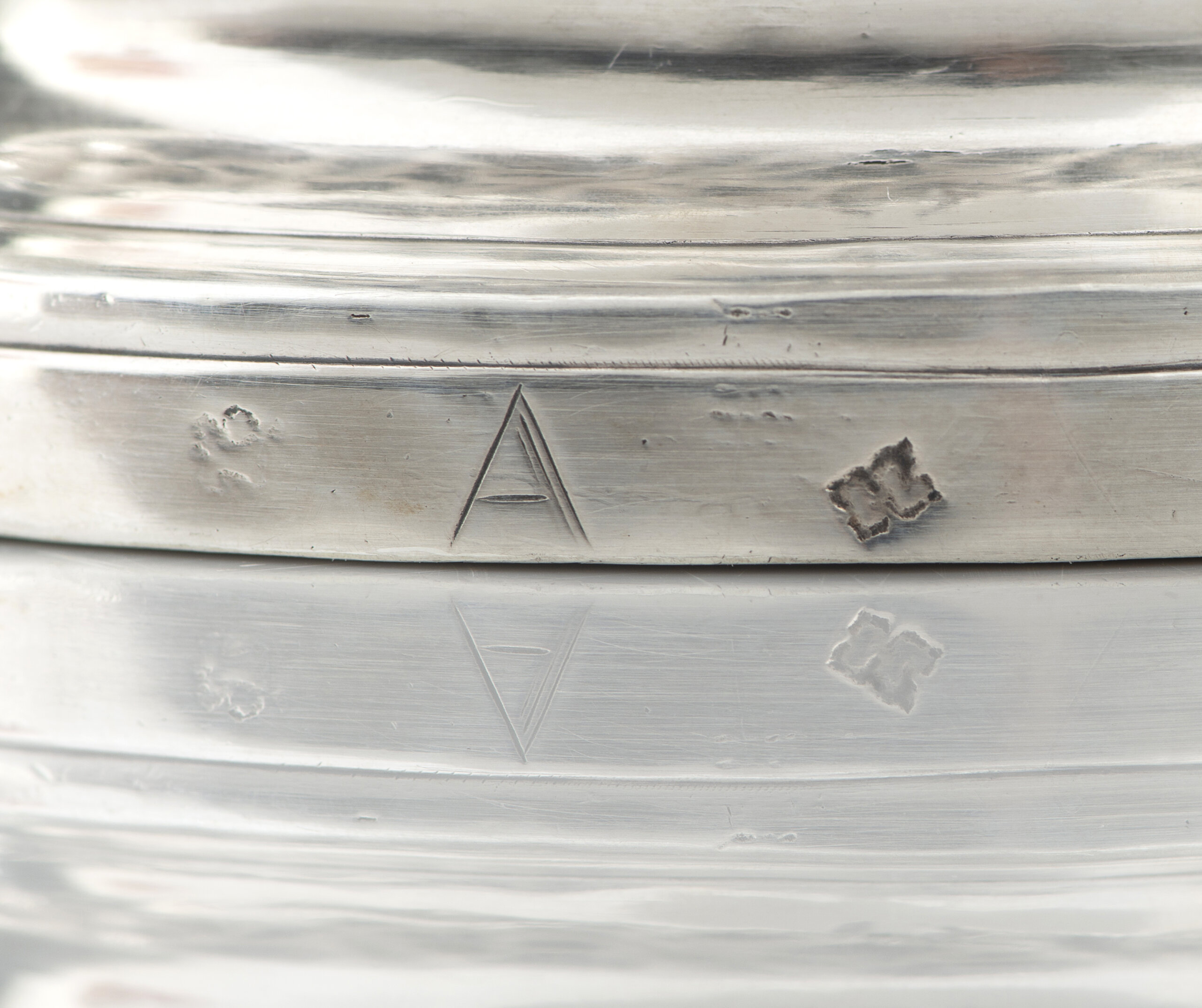 Marca de ensaiador de Lisboa (1694-1723) e marca de ourives atribuível a João Frederico Ludovice (1670-1752)