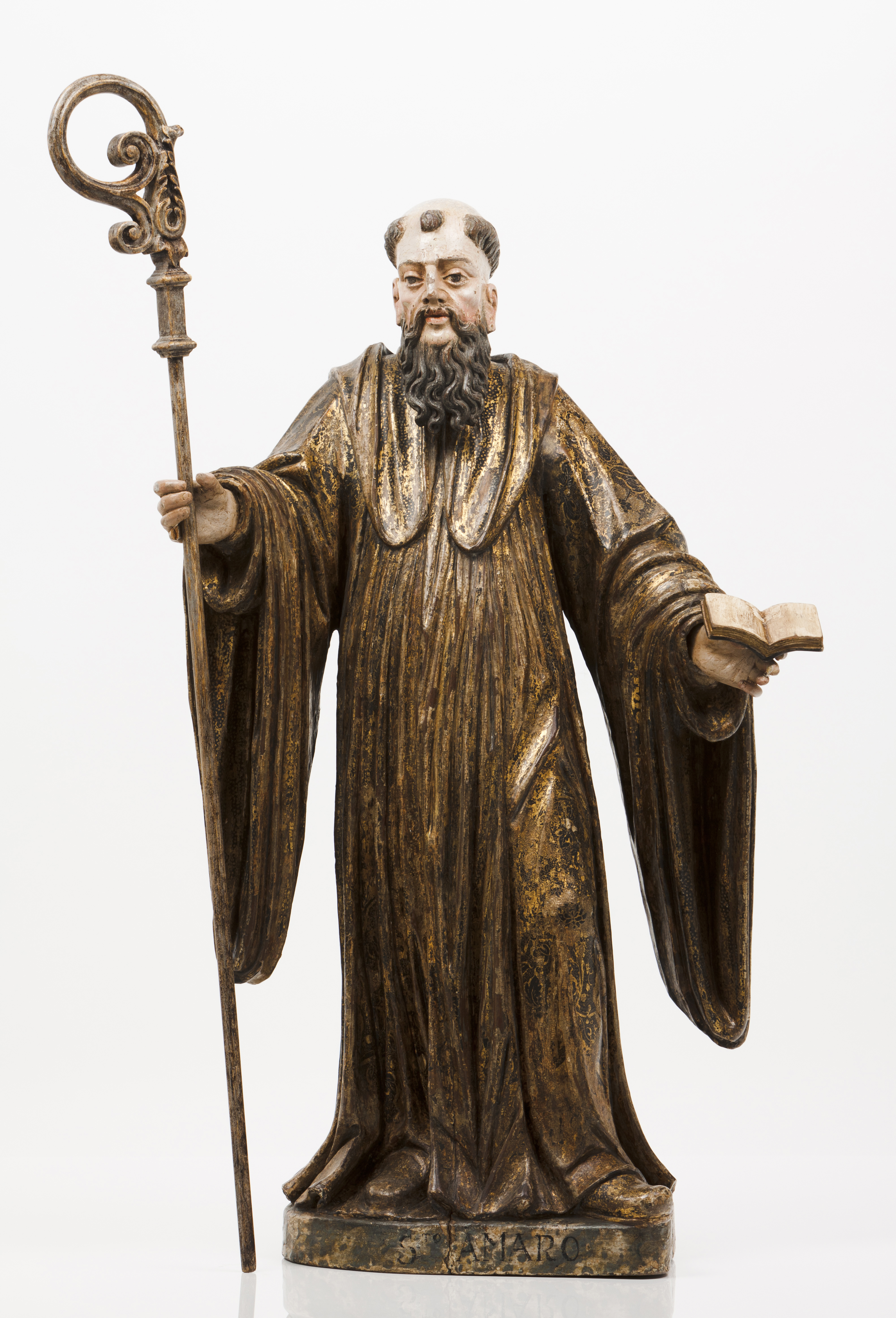 Escultura em madeira policromada e dourada