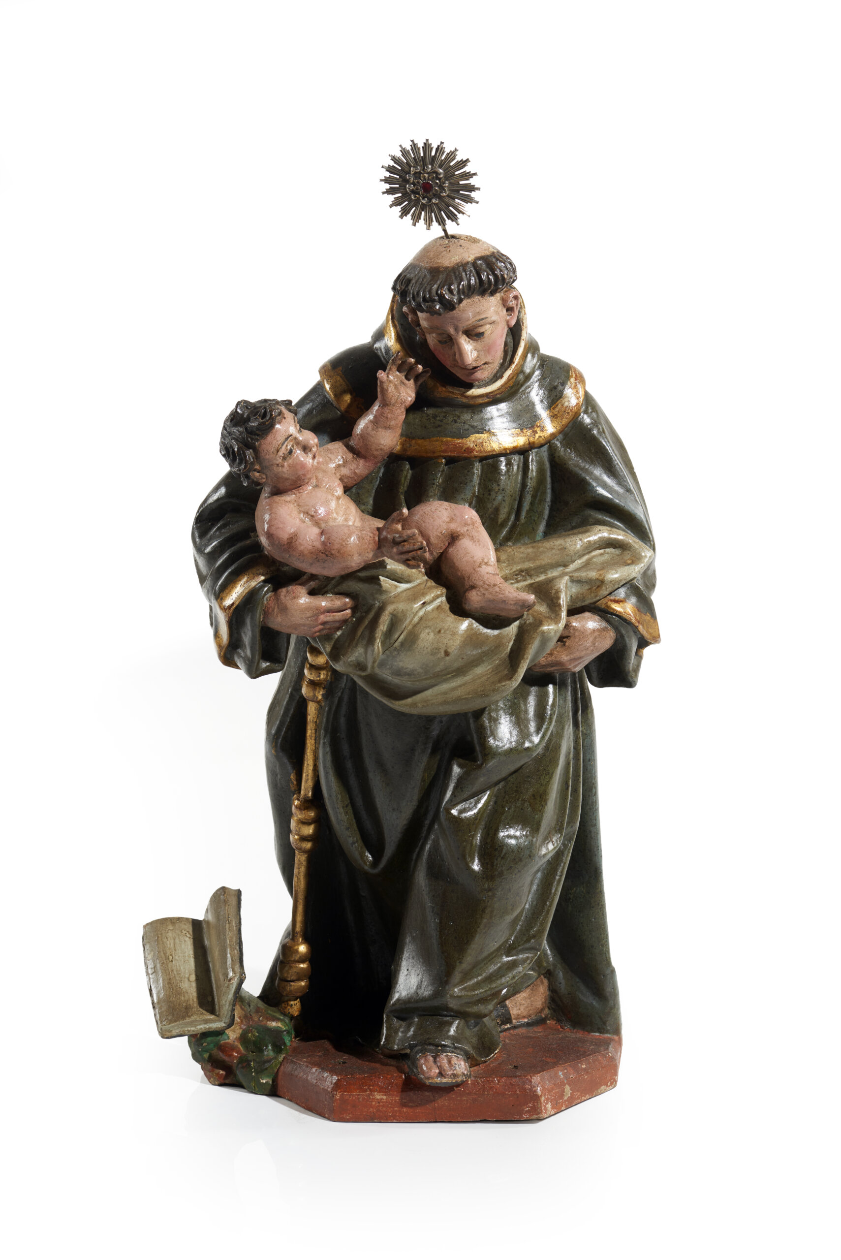 Escultura em madeira policromada e dourada