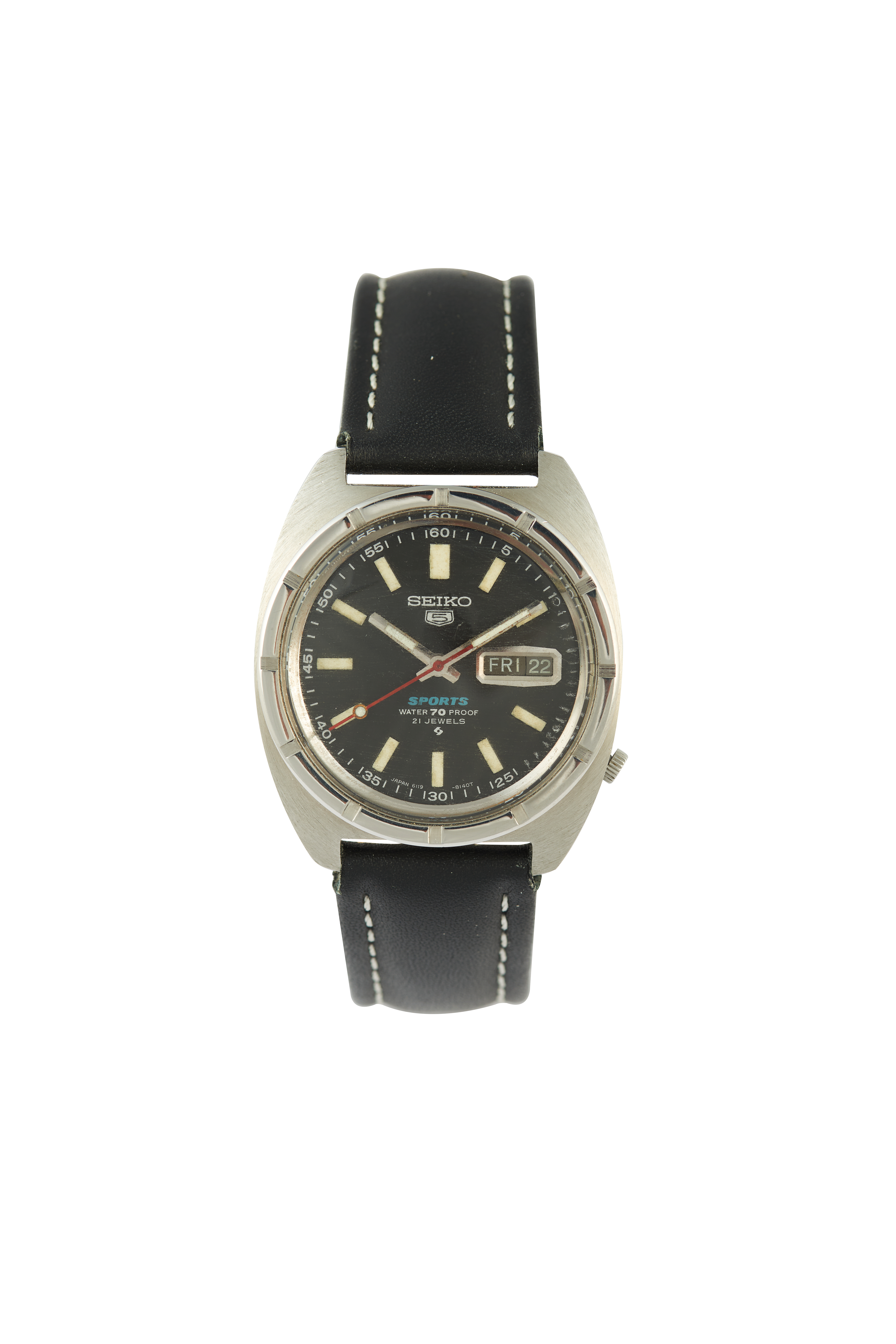 Modelo 5 Sports com a ref. nº6119-8140. Movimento mecânico automático (Cal. 6119B) com data e dia da semana às 15h. Caixa e bracelete em aço com a ref. nº 924022. Em muito bom estado de conservação.