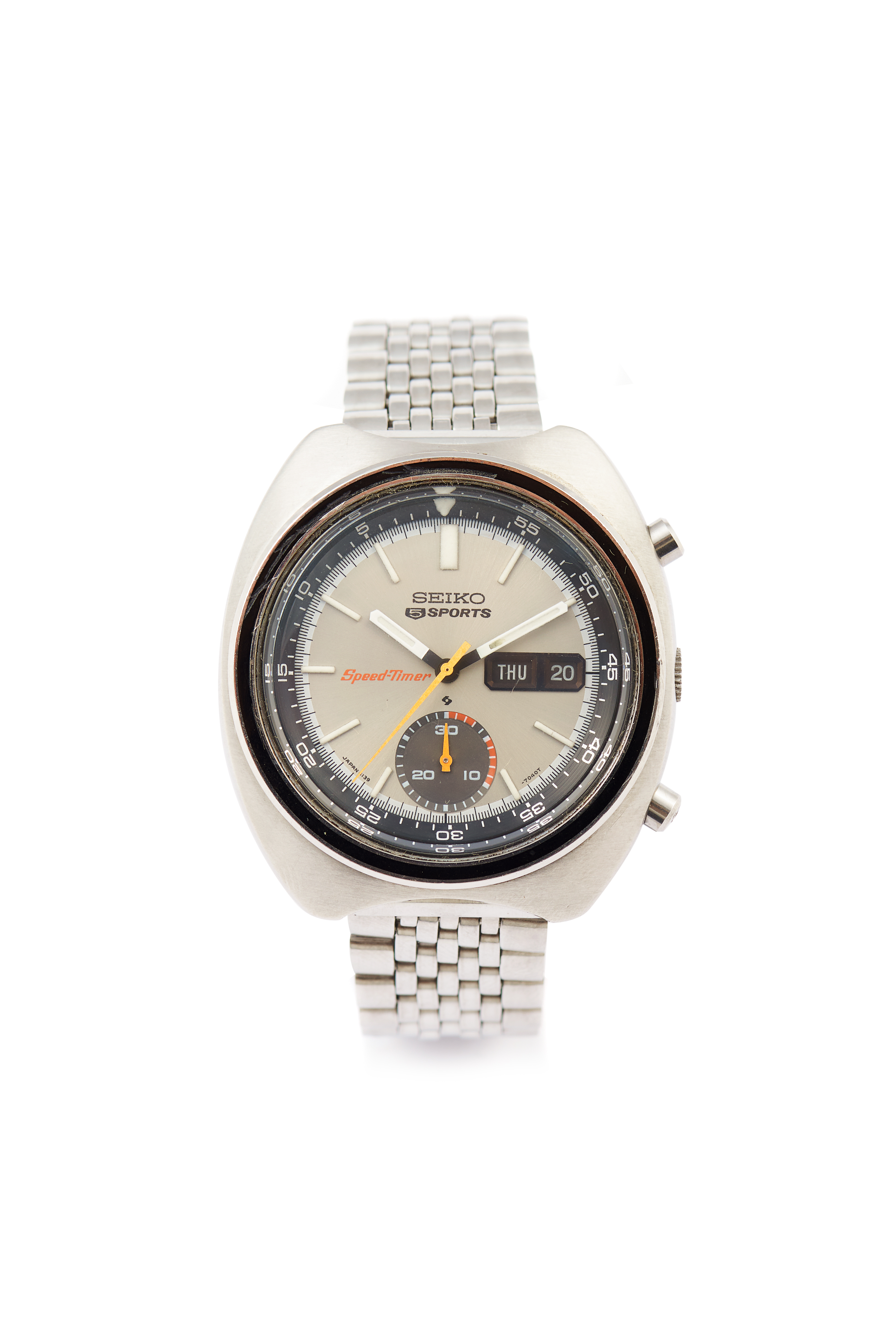 Modelo Speedtimer com a ref. nº6139-7020. Movimento mecânico automático (Cal. 6139A) com função cronógrafo, data e dia da semana às 15h. Caixa em aço com a ref. nº 144020. Em muito bom estado de conservação.
