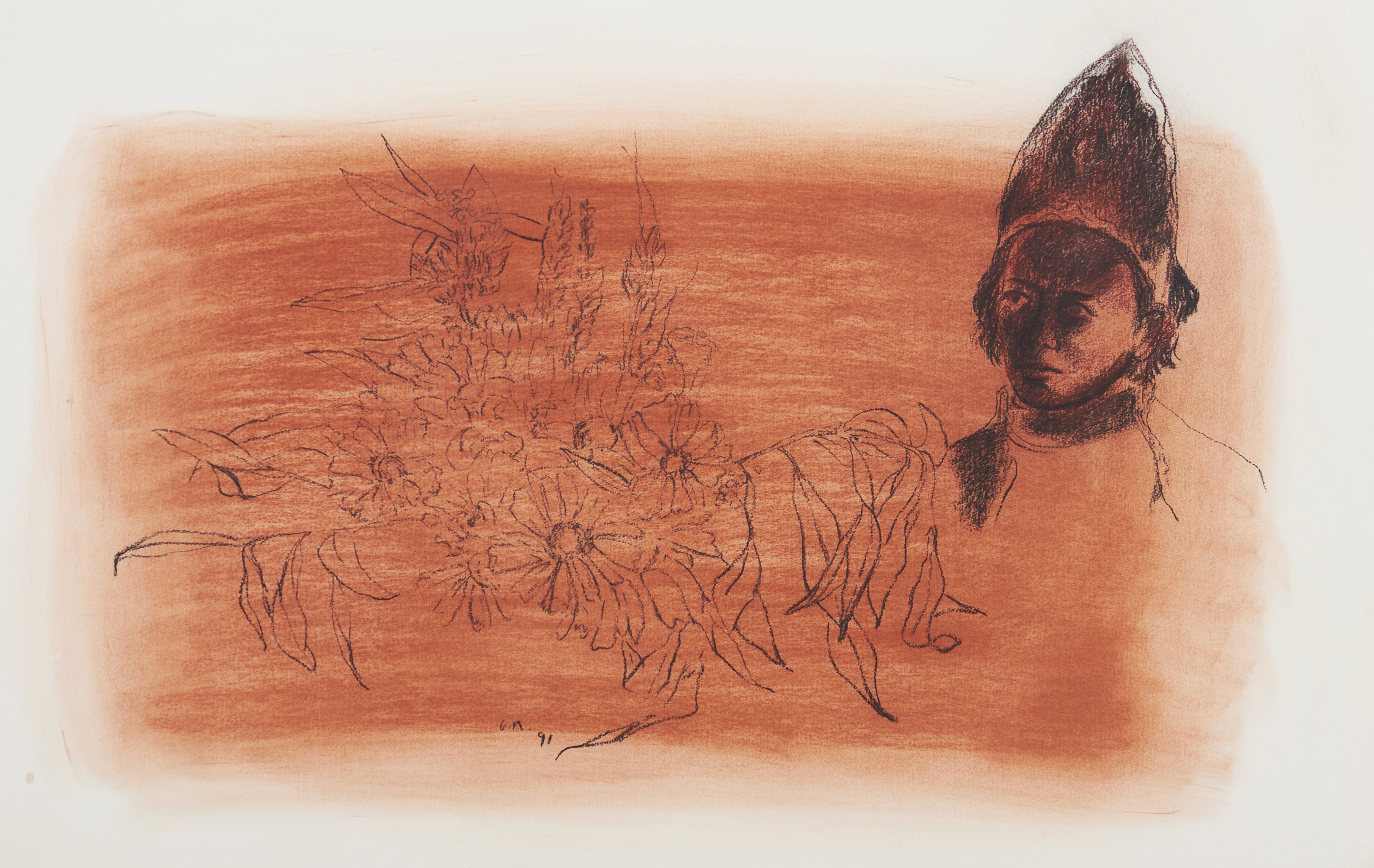 Carvão e sanguínea sobre papel