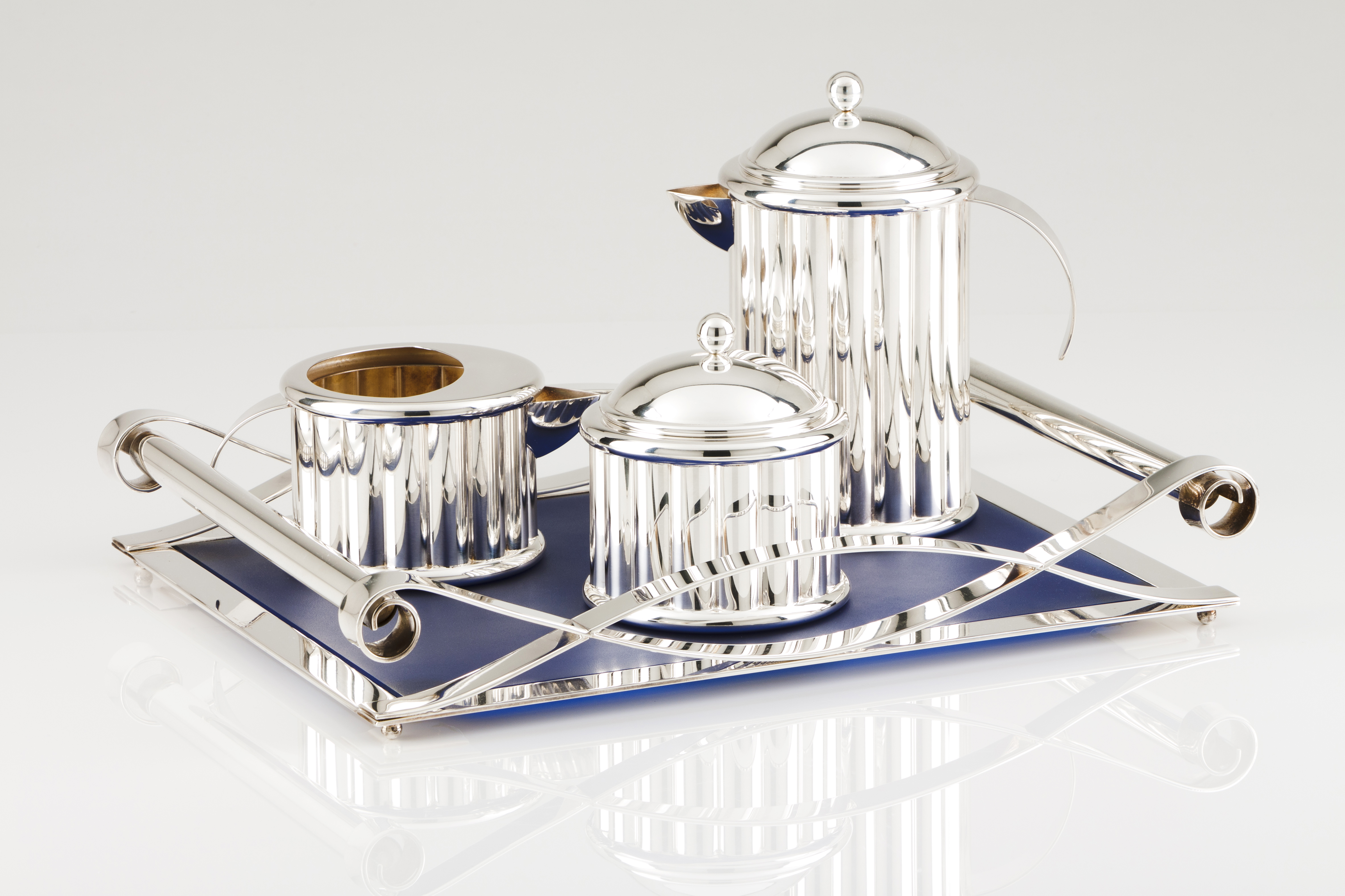 Composto por: cafeteira, leiteira, açucareiro e tabuleiro