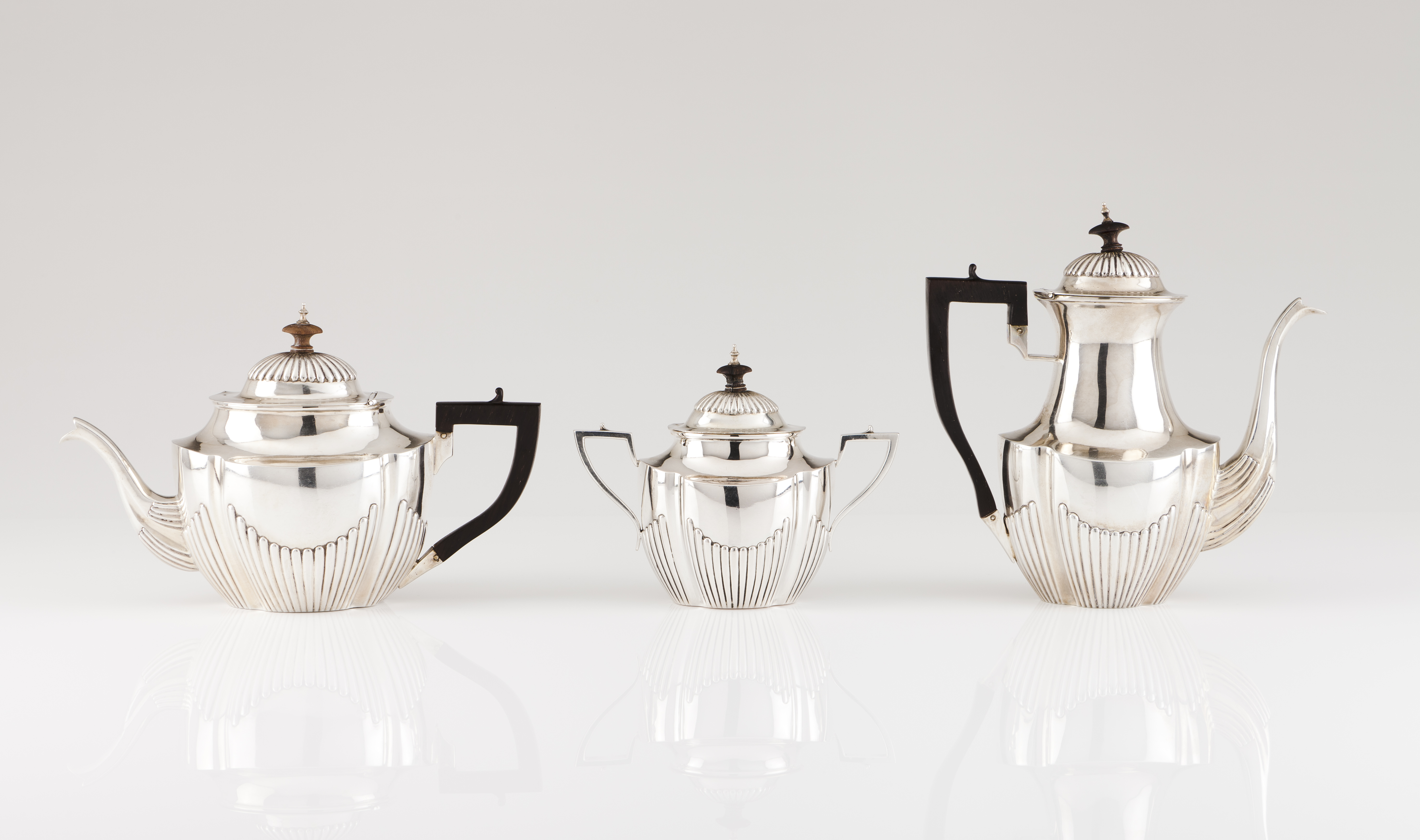 Composto por bule, cafeteira leiteira e açucareiro