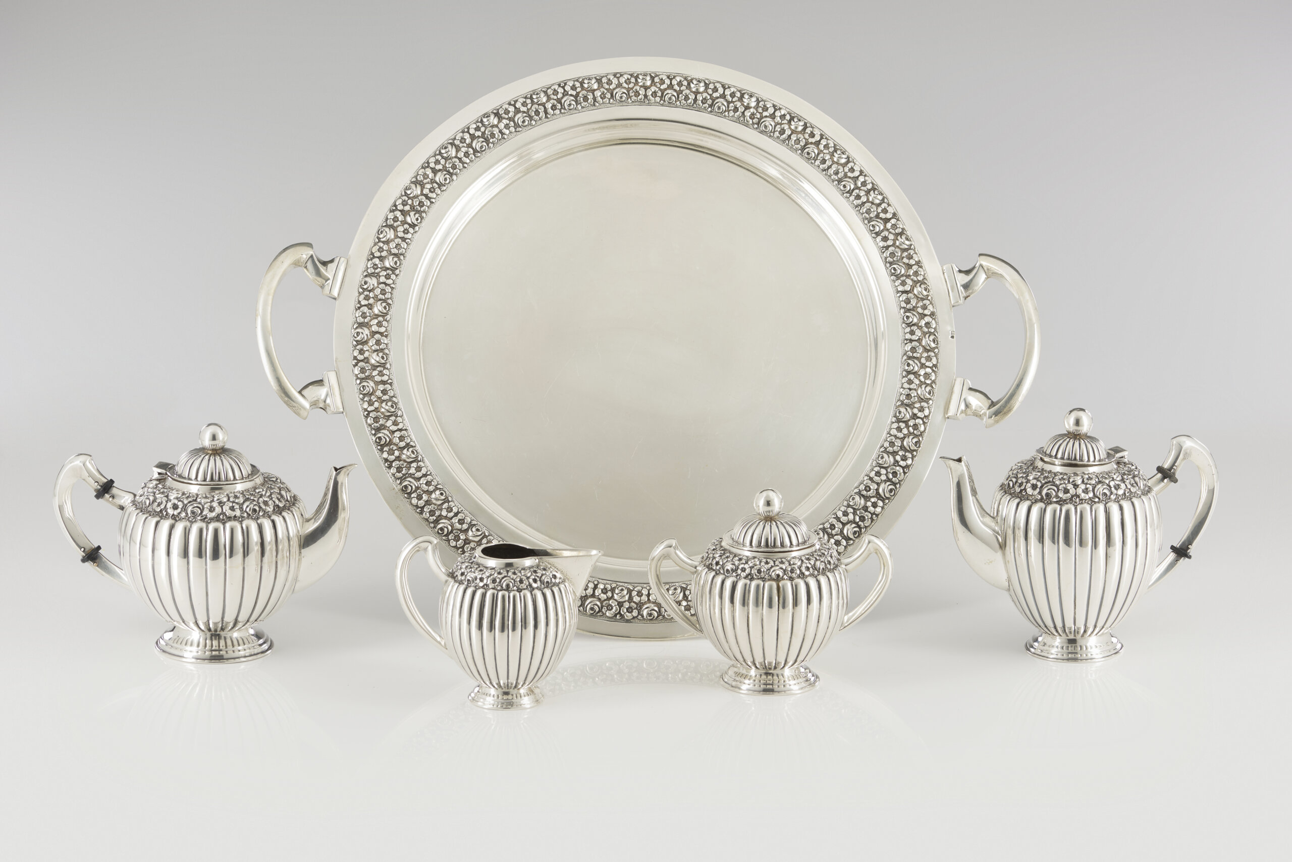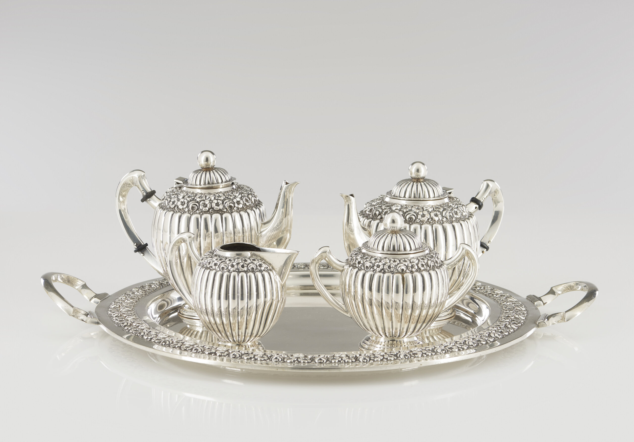 Composto por: Cafeteira, bule, leiteira, açucareiro e tabuleiro