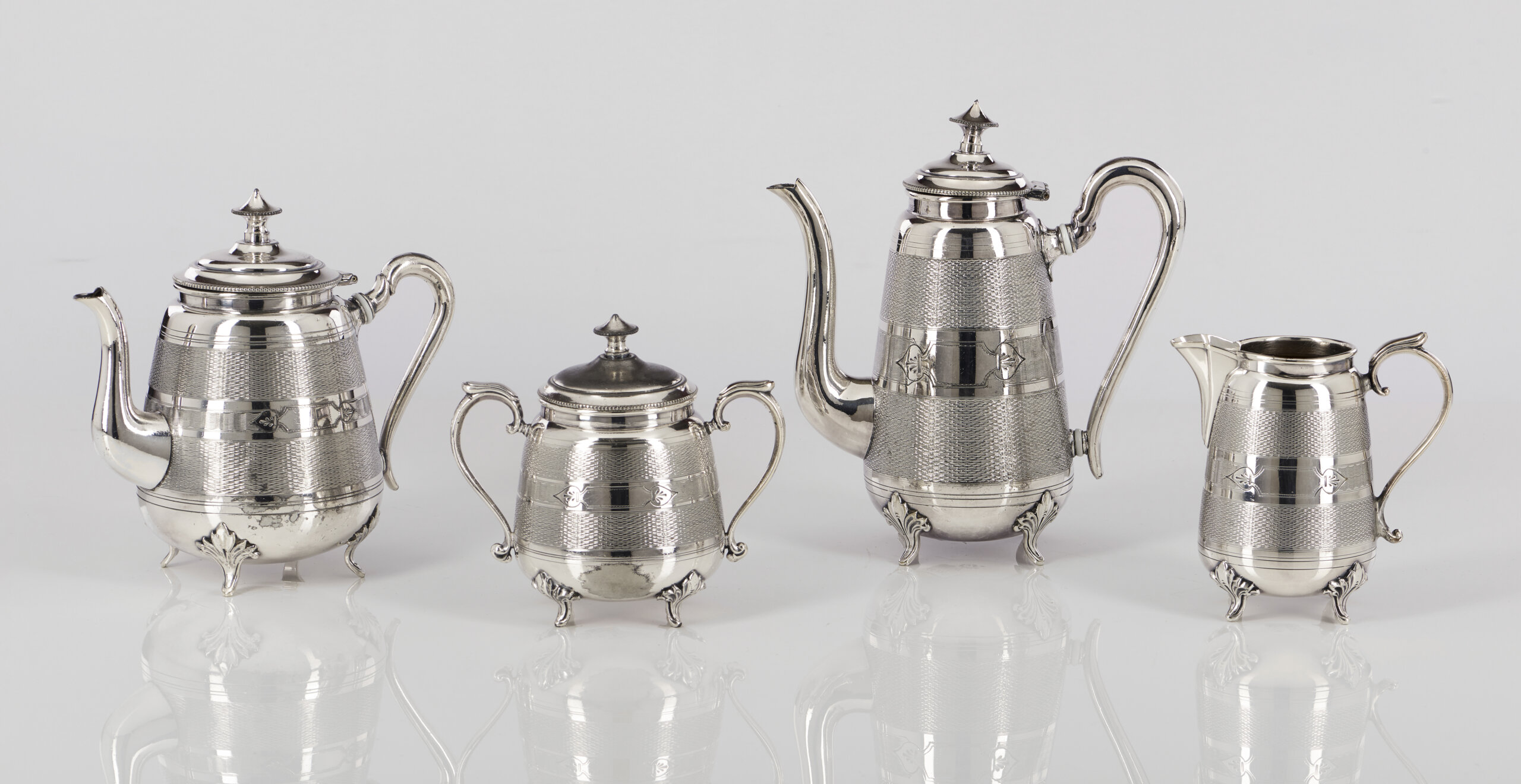 Composto por: cafeteira; bule; açucareiro e leiteira