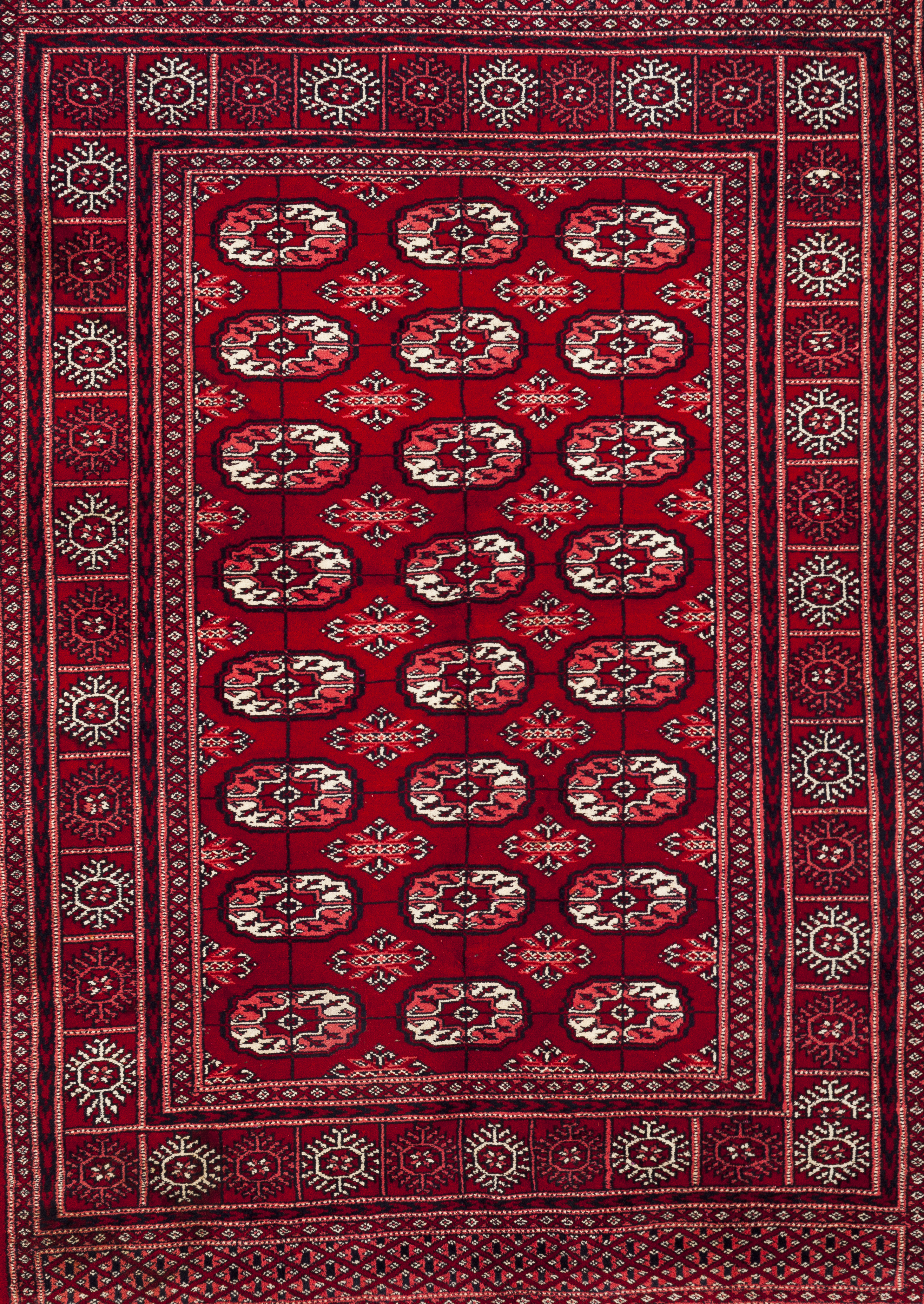 Em lã e algodão de desenho geométrico em tons de bordeaux e bege