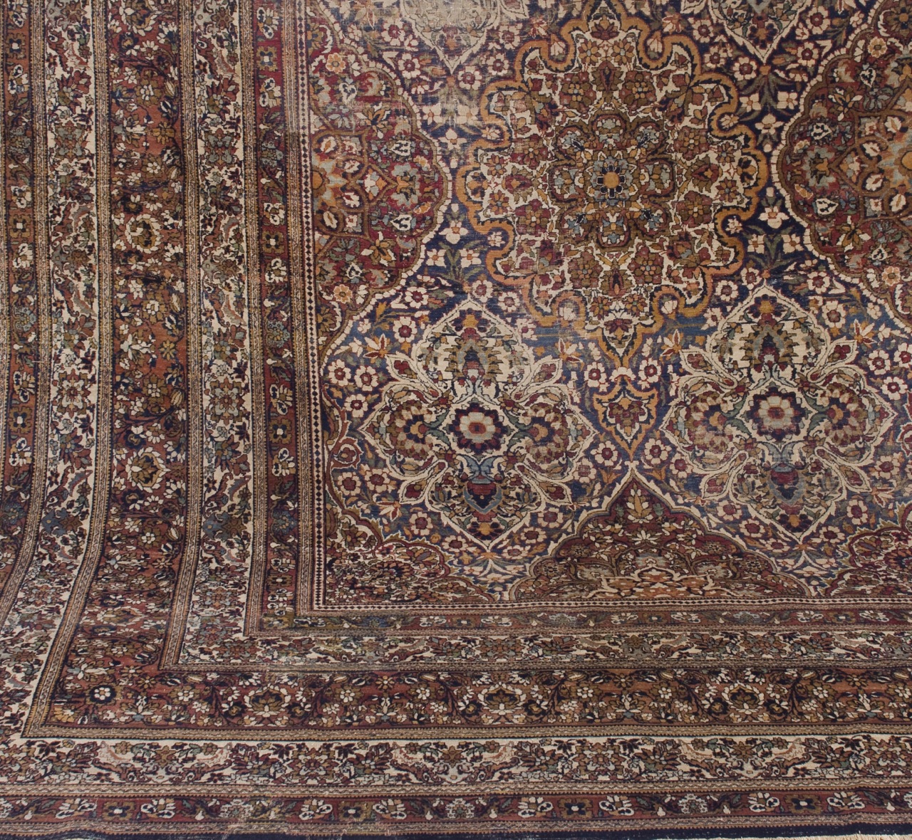 Em lã e algodão de desenho floral em tons de bege, bordeaux e azul