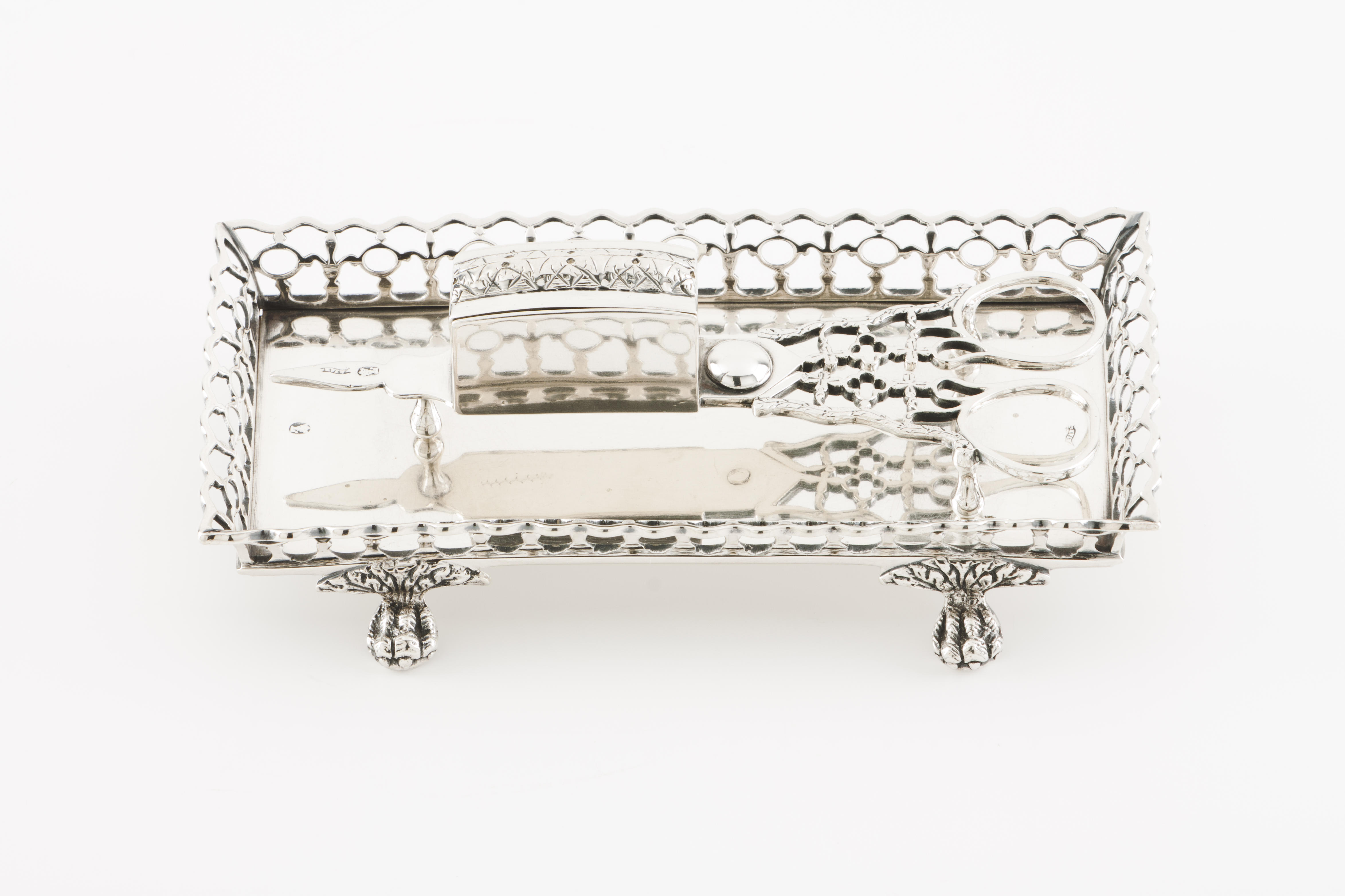 Base lisa rectangular com grade vazada assente em 4 pés de garra