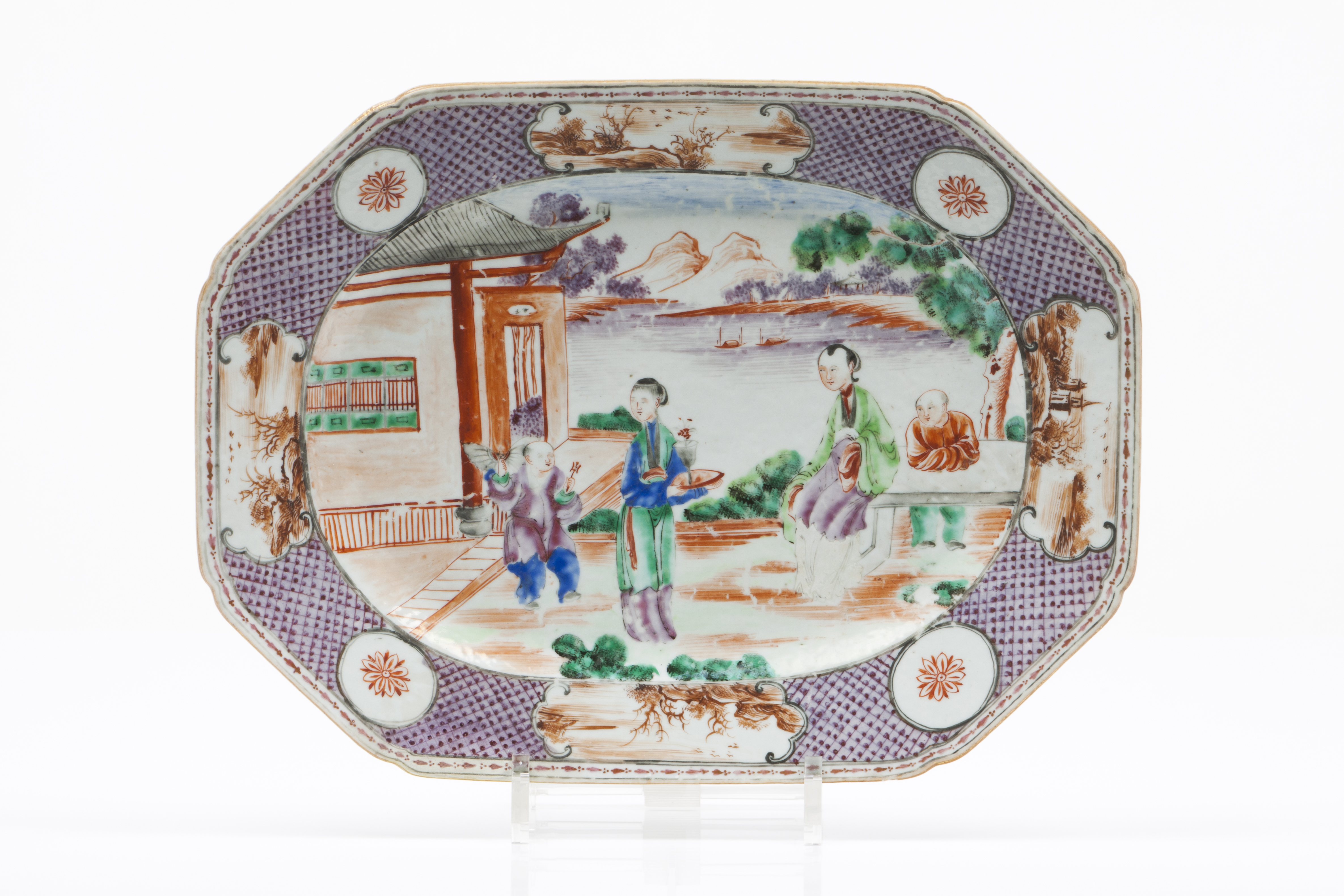 Decoração policromada representando cena do quotidiano chinês